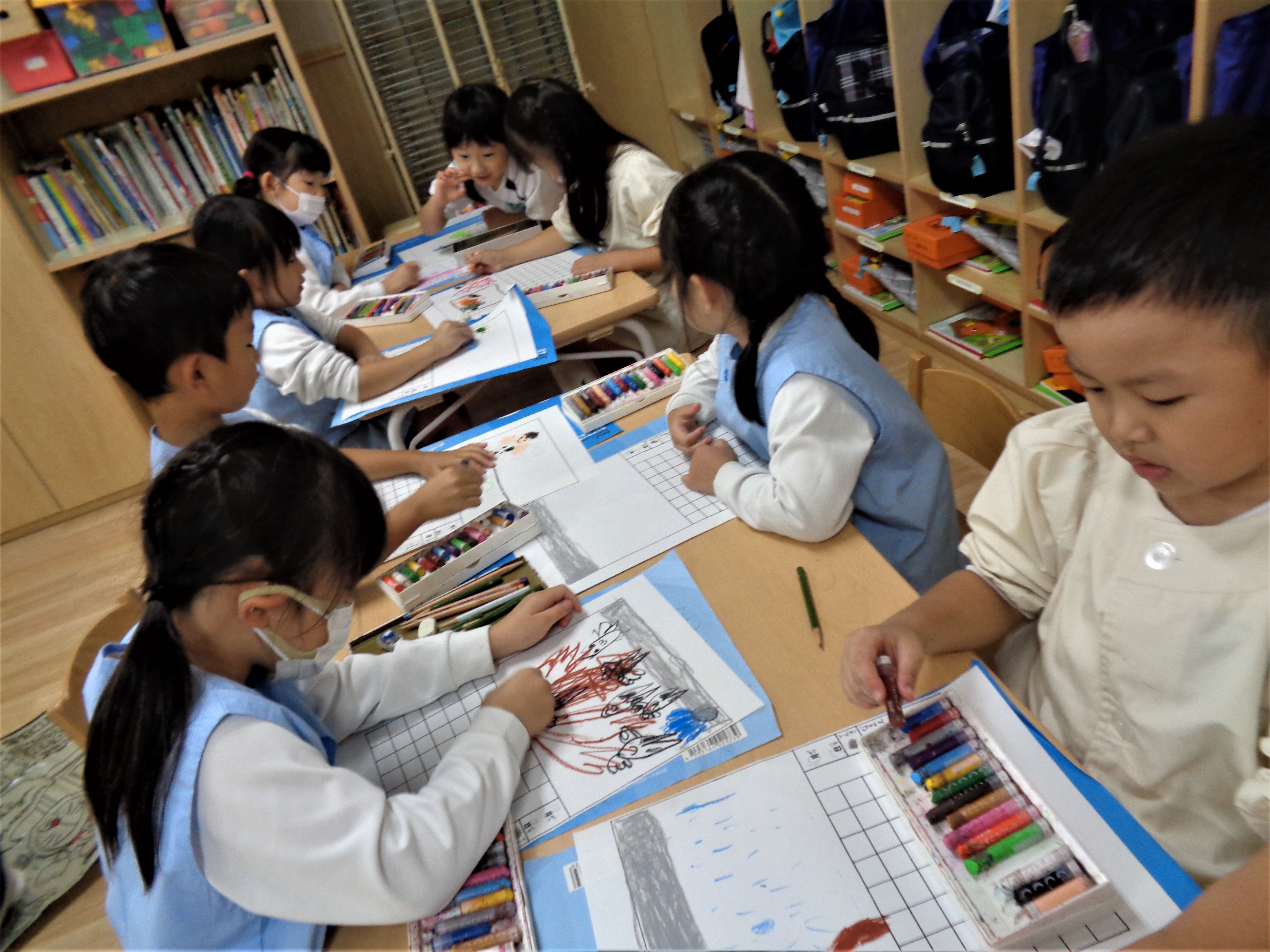 楽しかった動物園の思い出を文字や絵で表しながら絵日記ができあがりました。