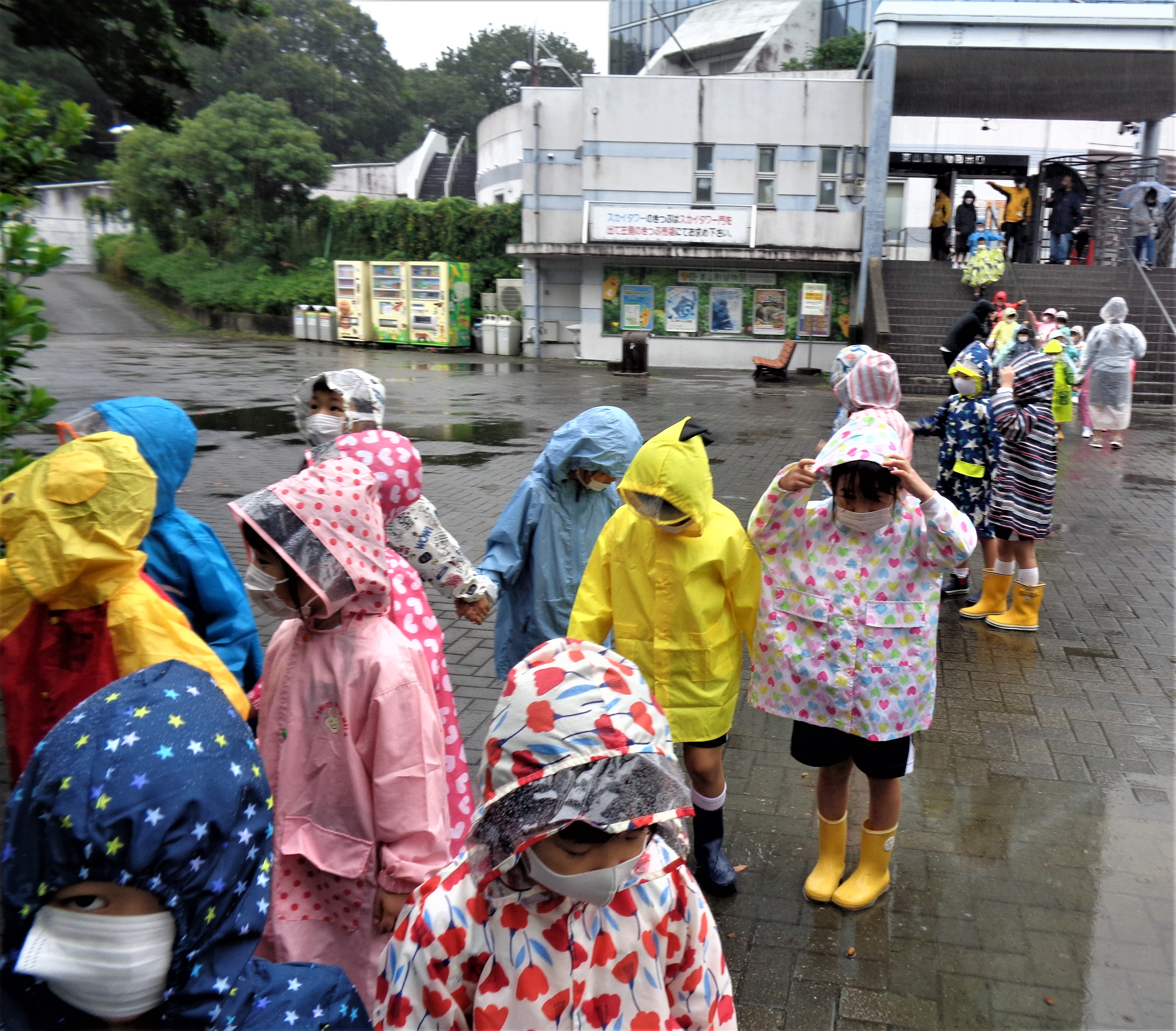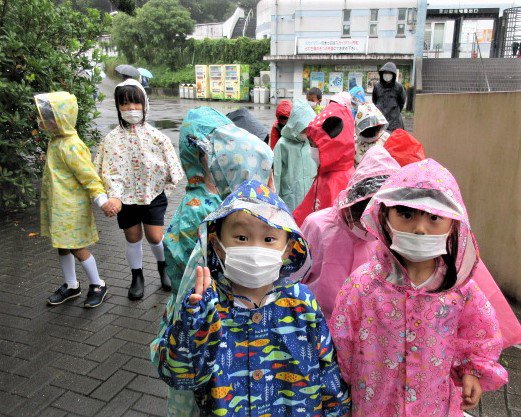 しかし、カラフルなレインコートを着て、出発! お天気は雨でも心は♪ウキウキ♪な青組さん!
