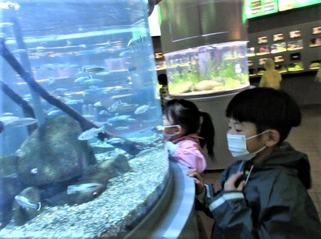 たくさんのメダカが集まっていて、「きれいだね!!」と大興奮の子どもたち。