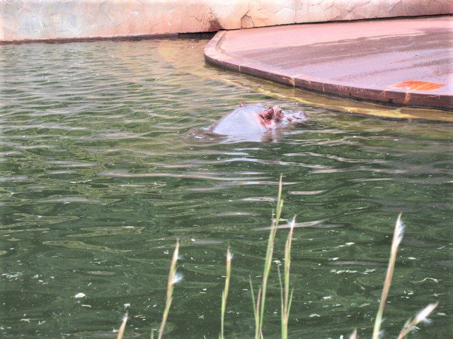 最初はカバに出会えました!ぴょこっと顔を出し「いた!大きい顔!」と大喜び。