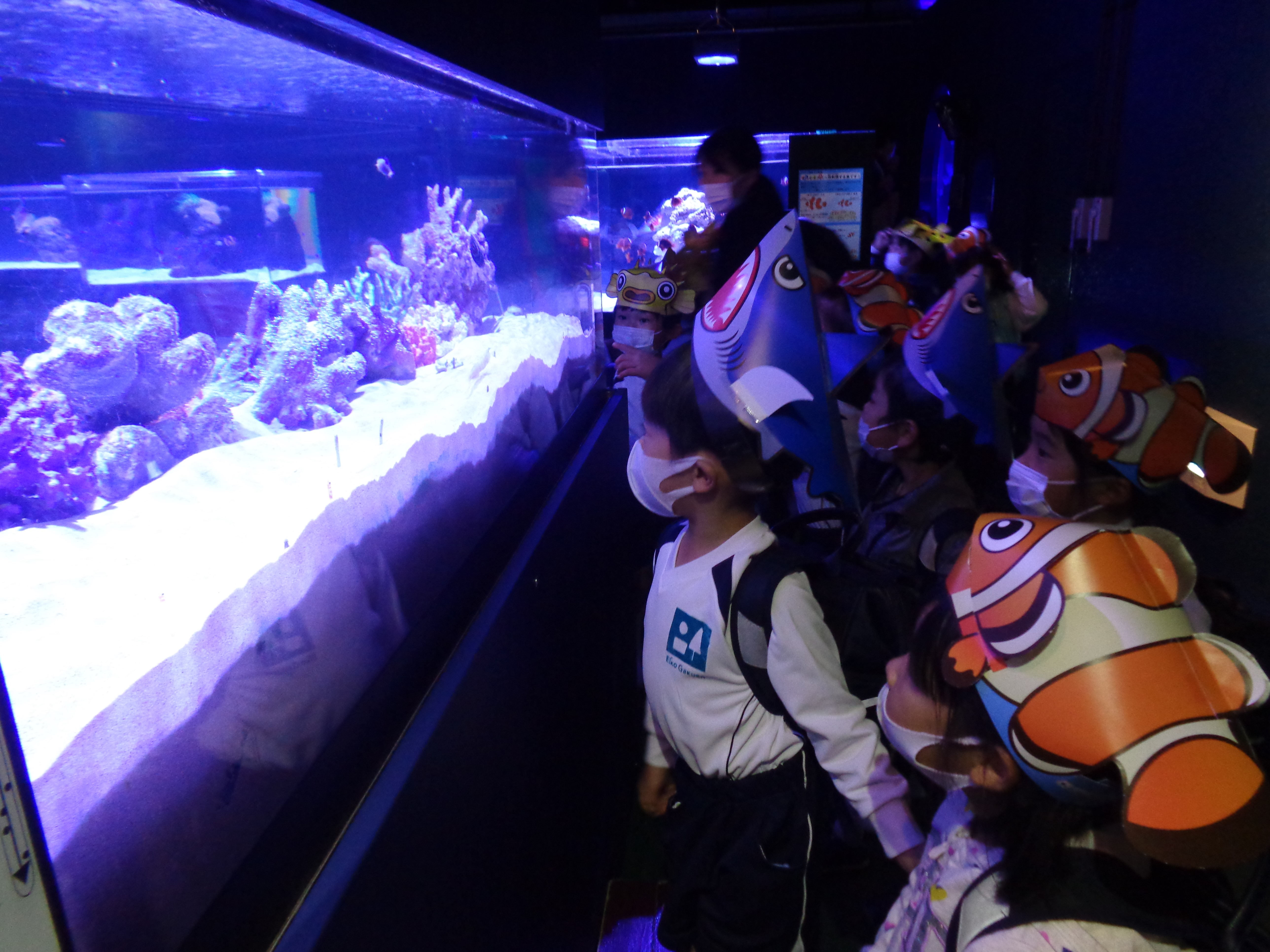 水族館には、エイやチンアナゴ、カニやタコなど身近に見ることができました。