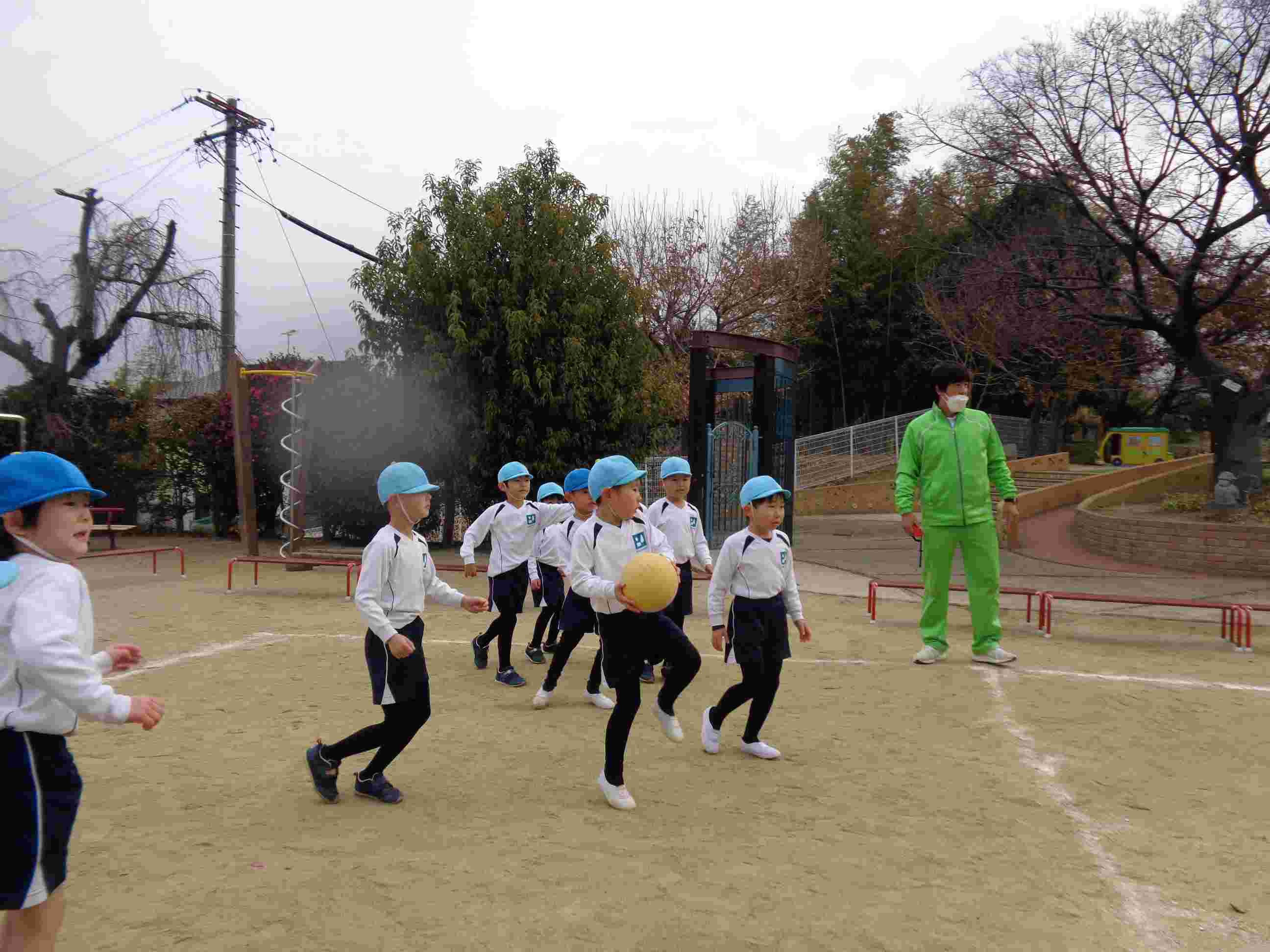 姉妹園の鳴海ヶ丘幼稚園にて、年長・青組さんのドッジボール大会がありました。