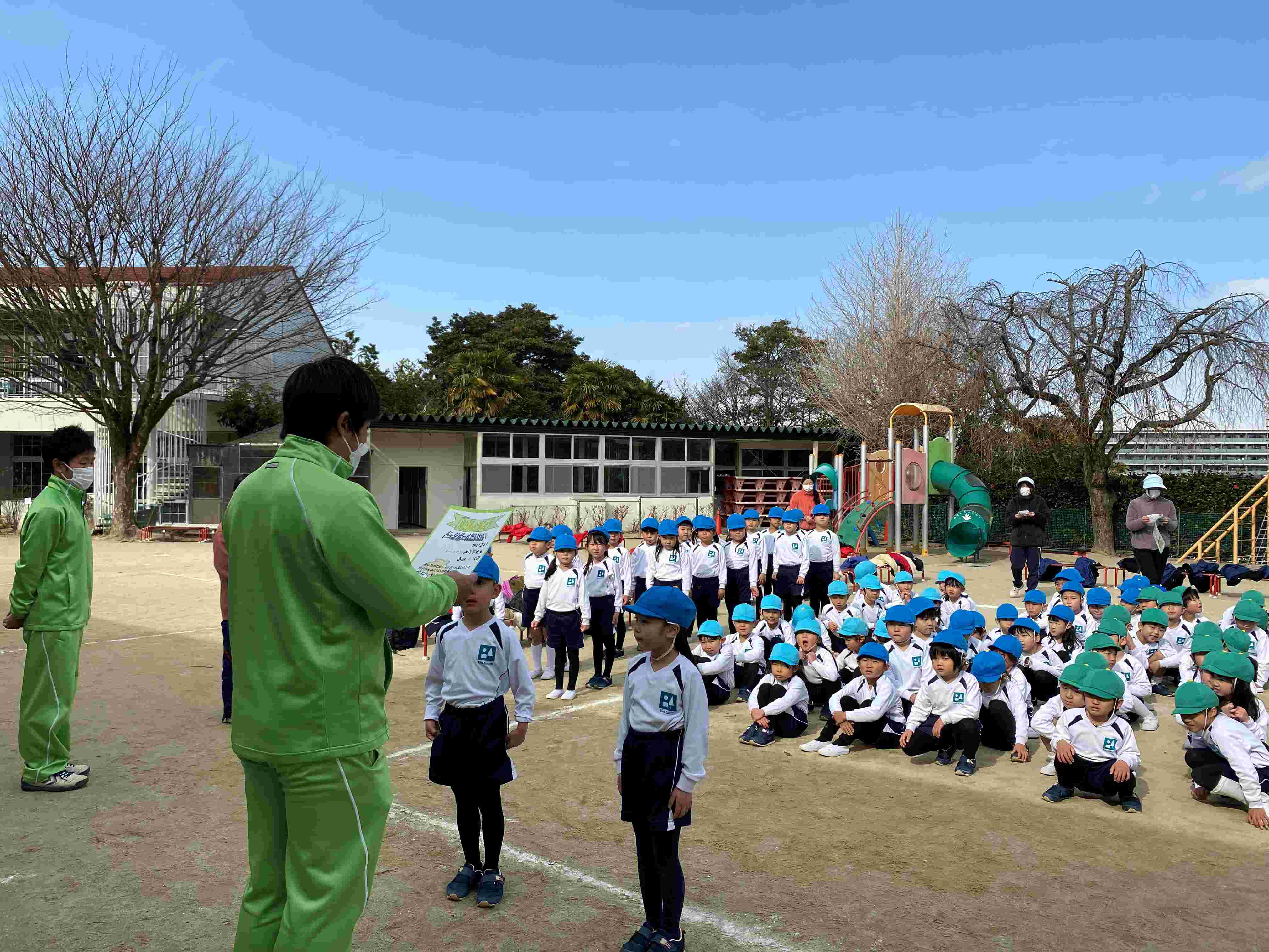 「いってきまーす!」「鳴海ヶ丘幼稚園の子は、強いかな?」