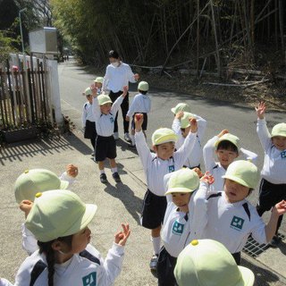 年少・黄組さんは、初めての裏山のぼり!「山、登れるかな~」「動物いるかな~」ちょっぴり不安とワクワクな気持ちの黄組さん!