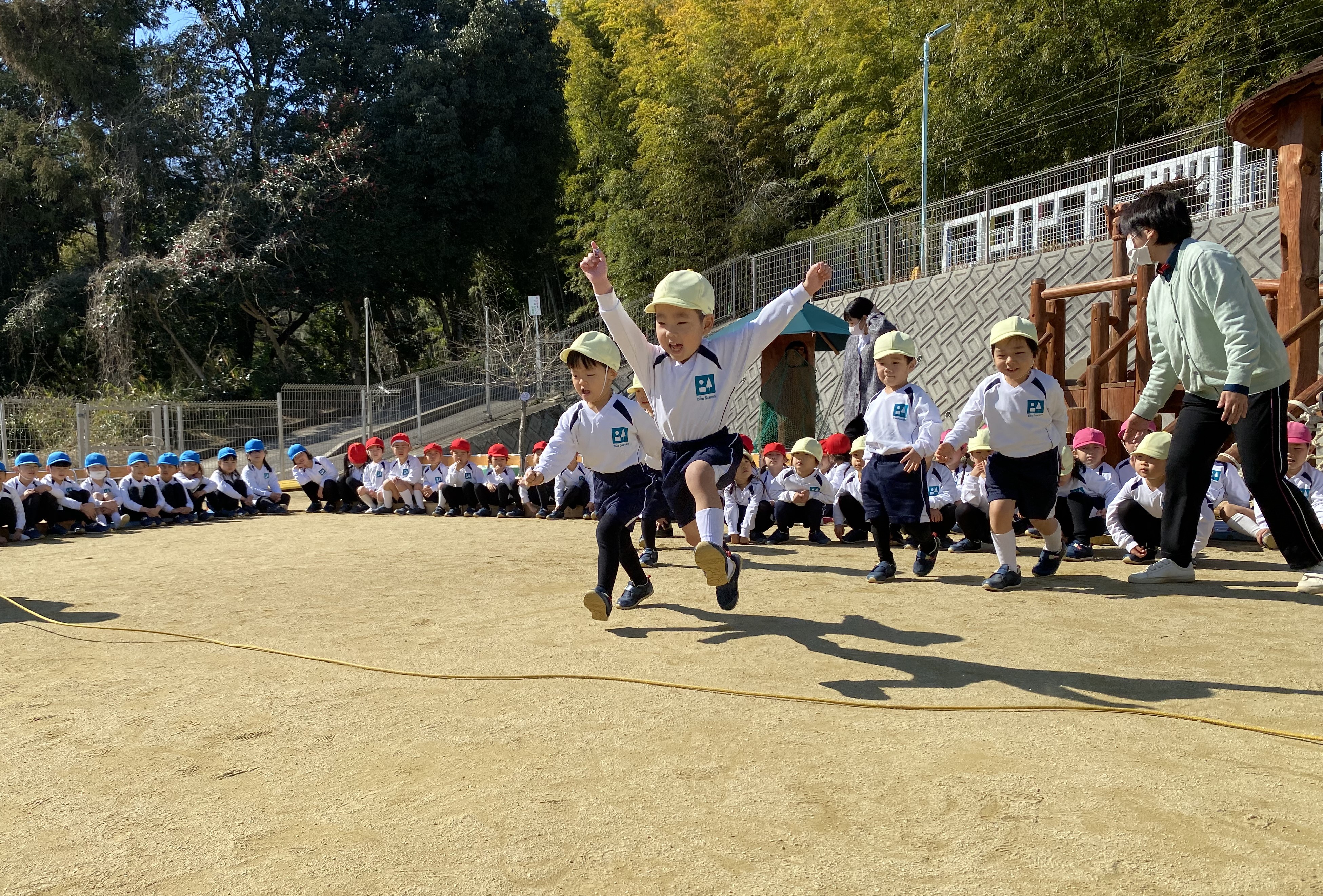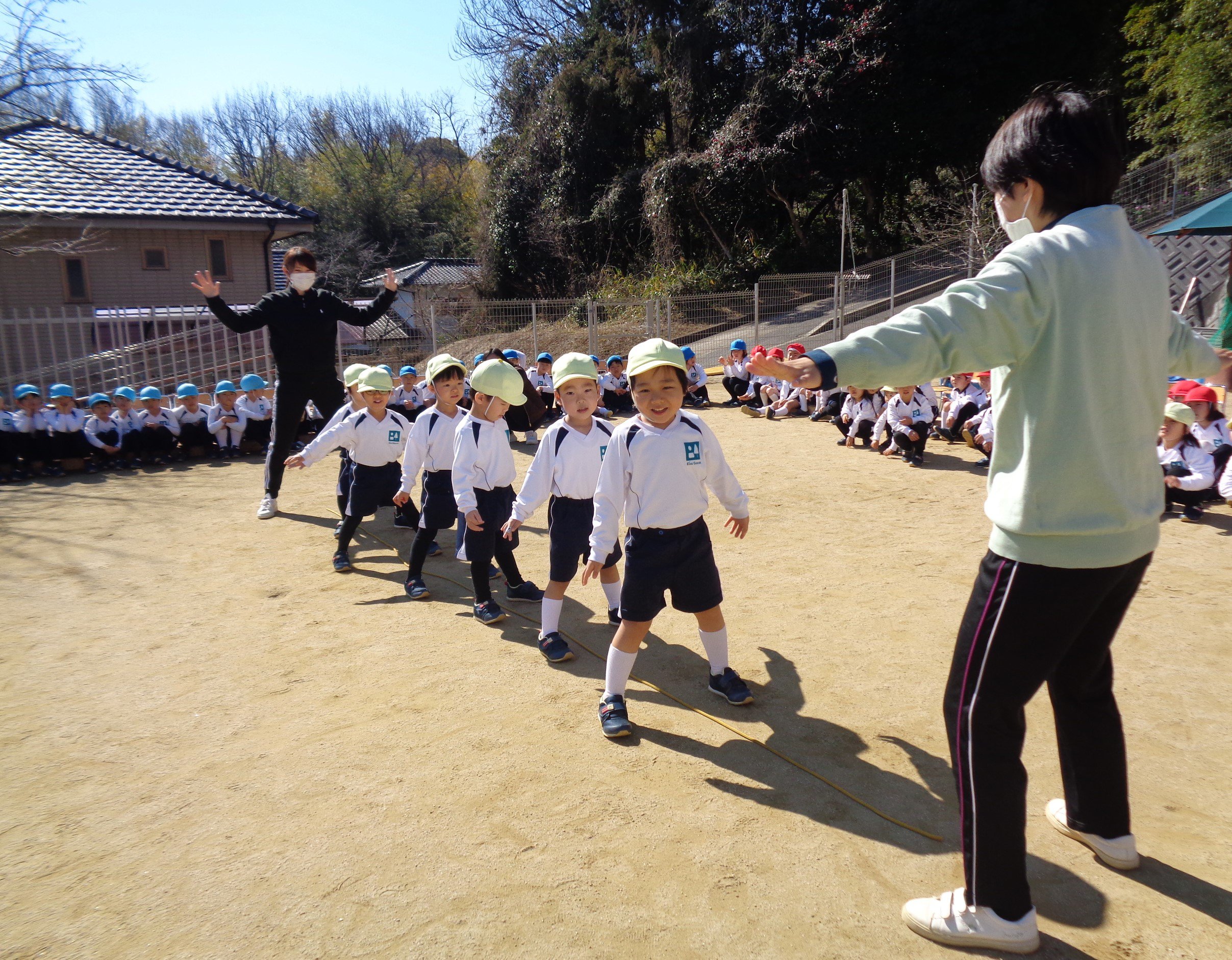 難しい跳び方ですが、さすが青組。見ている子たちも「すごいね!」と驚いていました。