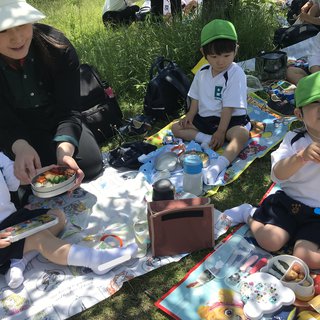 今日は、全クラス、バスに乗って園外保育にでかけましたが、どの子も楽しそうな笑顔が見られました。初めてのお家からのお弁当も嬉しそうにお口いっぱいにほおばっている姿、とてもかわいかったです。
