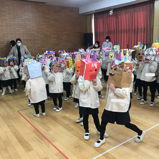 幼稚園で豆まき会が行われました。