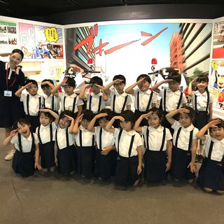 また、空からの映像もあり、よく見ると、『栄光八事幼稚園』が見えていました。「今日は、栄光八事幼稚園の皆さんが来てくれているので、特別に写してあります。」とお話しがあり、子ども達も「あっ 運動場だ!」と幼稚園に気づいた様子でした(*^^*)