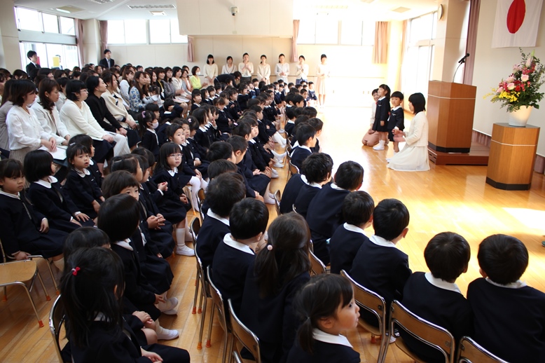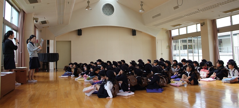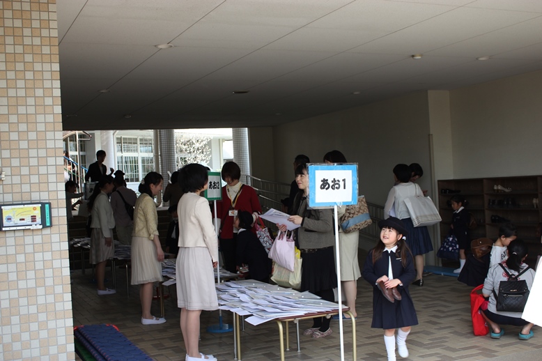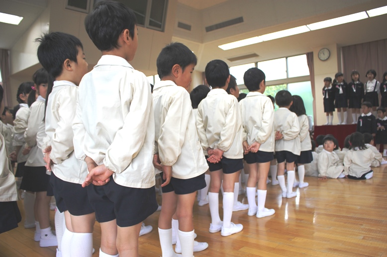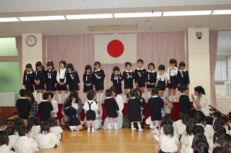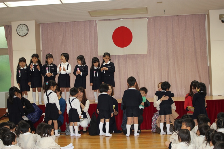 誕生会には、各学年ごと親子で入場!