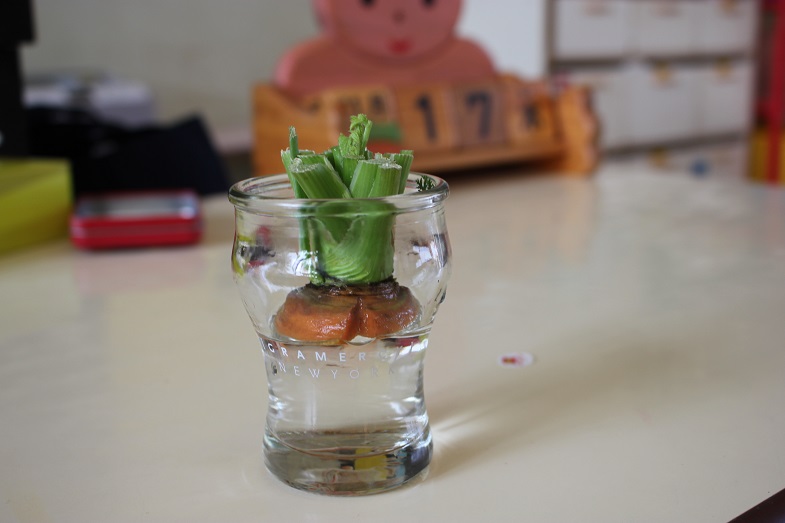 ウサギさんにあげたニンジンのヘタを水に浸けて置いたら