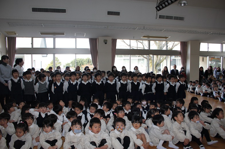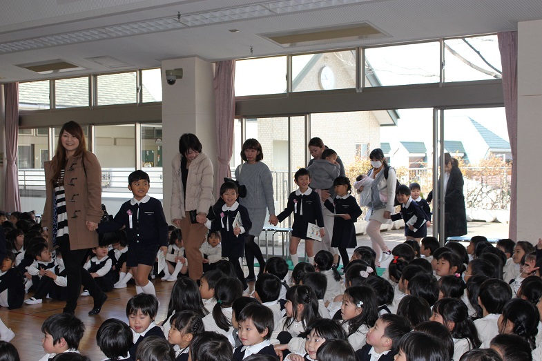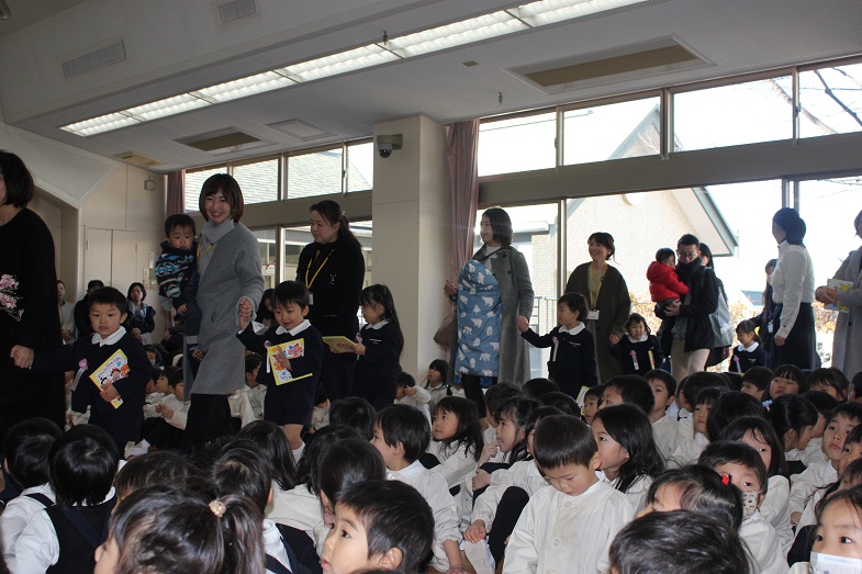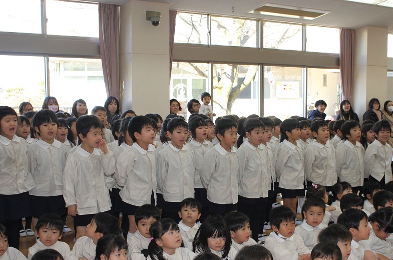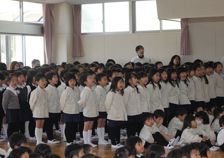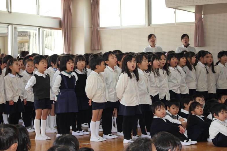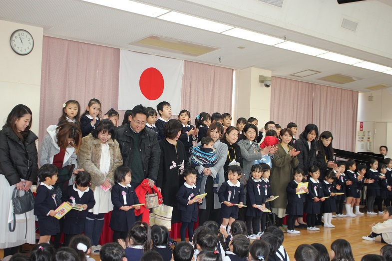 会の最後は、幼稚園のお友だち、先生、お父様お母様も一緒に歌います。