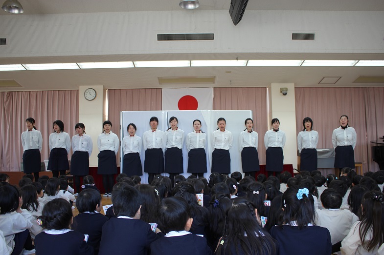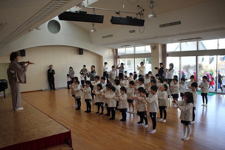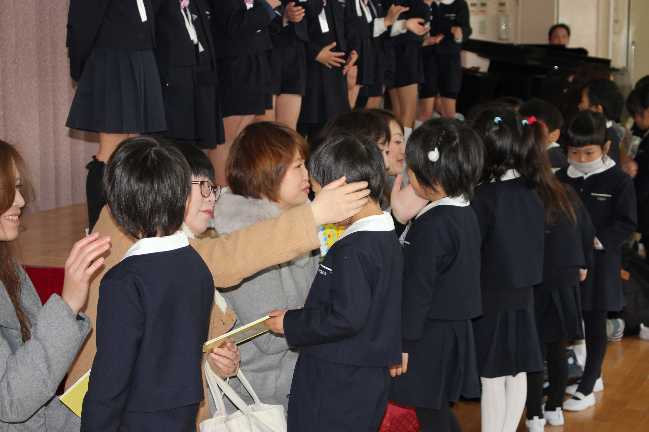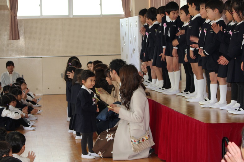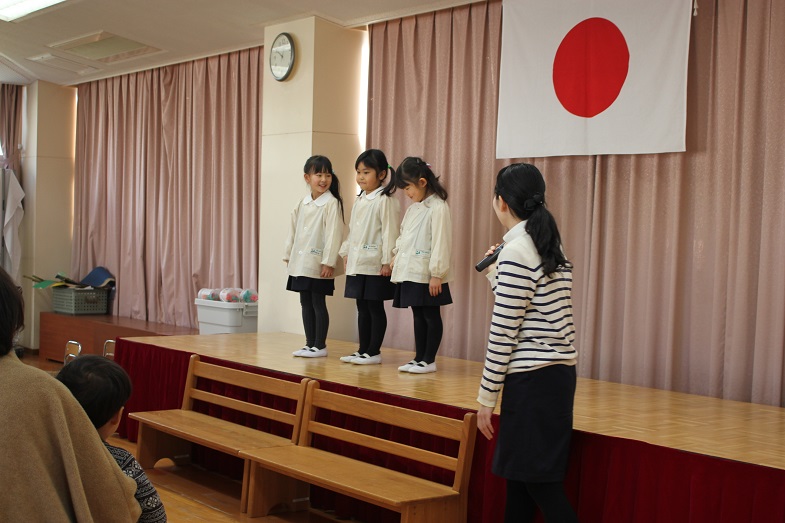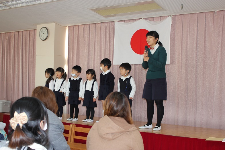 会の最後は、幼稚園のお友だち、先生、お父様お母様も一緒に歌います。