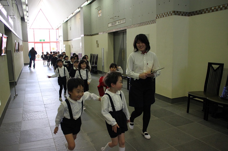 お誕生日のお友だちはお父様やお母様と手を繋ぎ、