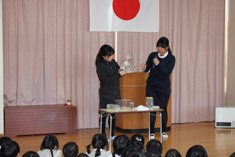 水を使った楽しい実験を披露してくださいました。