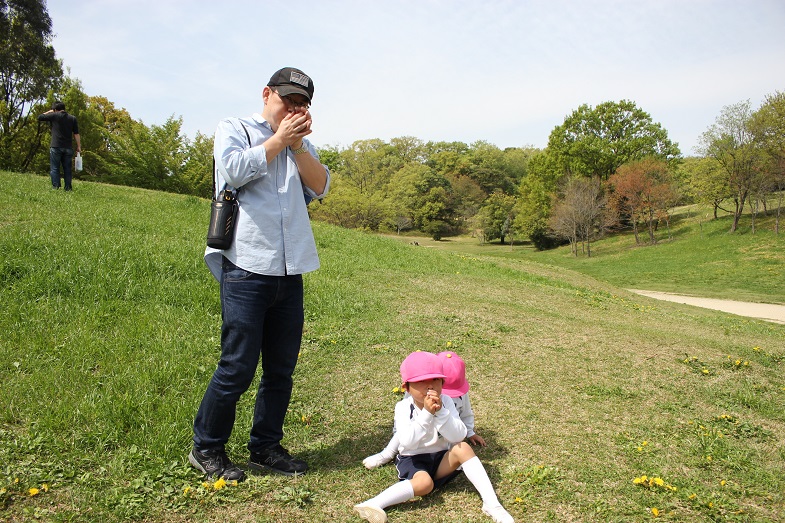 大高緑地のいろいろな見どころポイントをまわって若草山に帰ってくると・・・