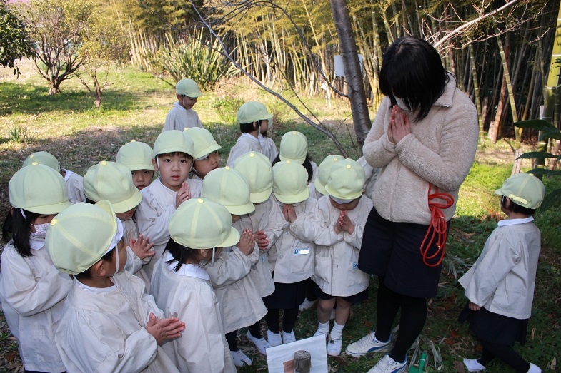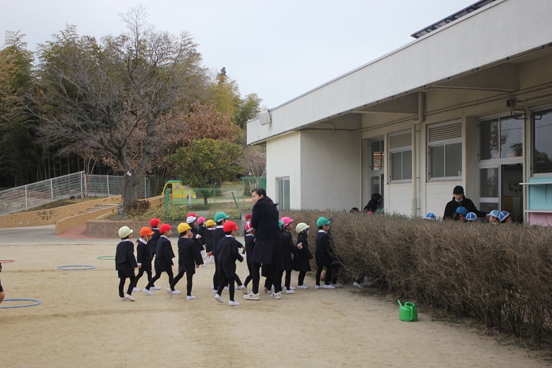 (どんぐりコースのお友だちが落ち葉を運び入れるお手伝いしてくれました)