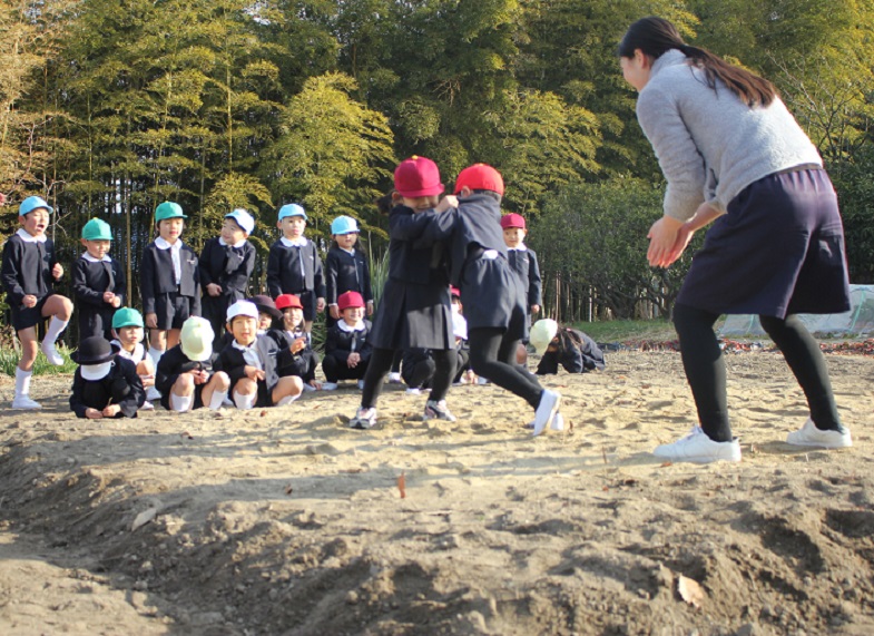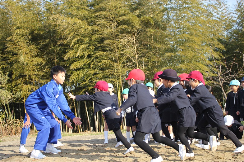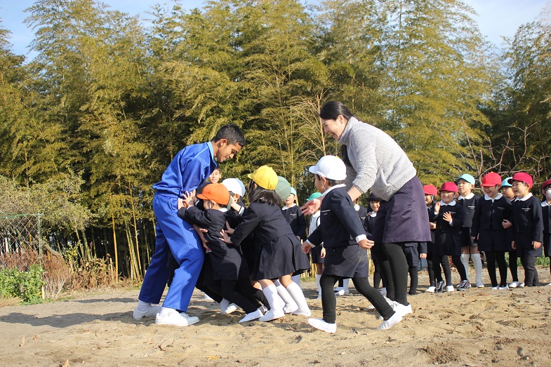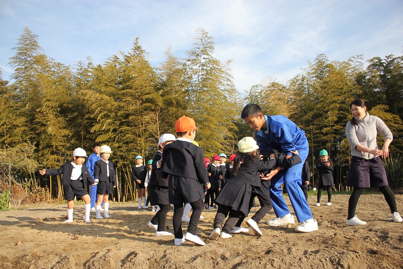 早速縦割り活動の時間にお相撲をして、みんな遊び始めました。