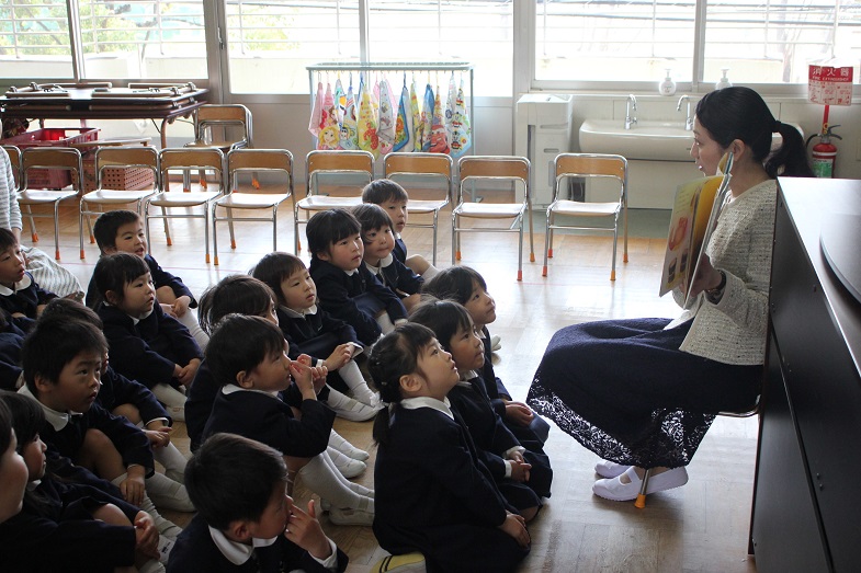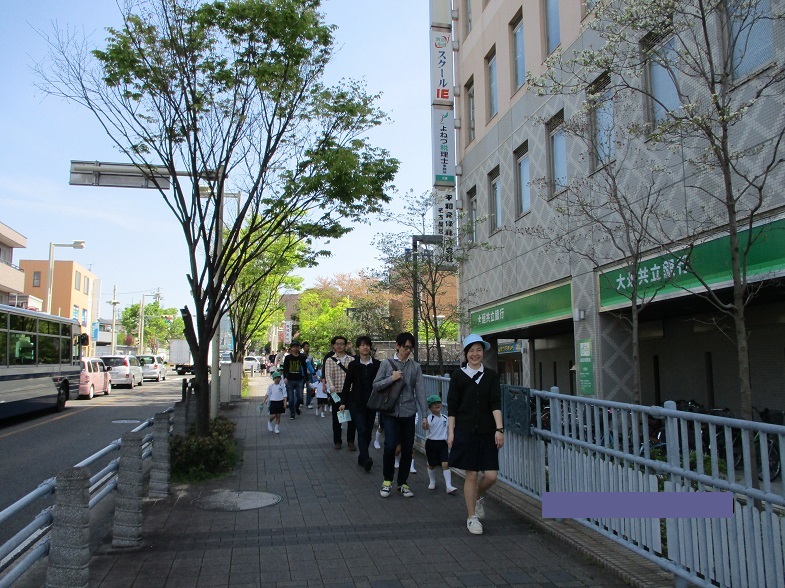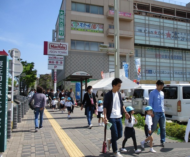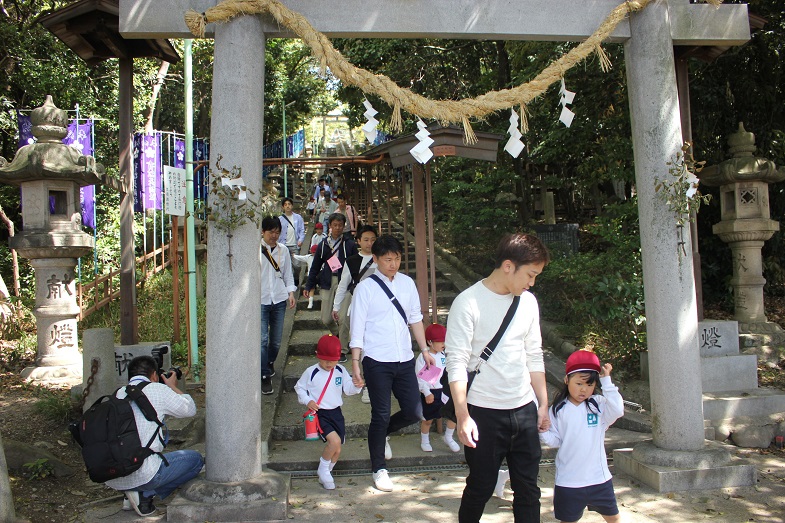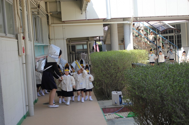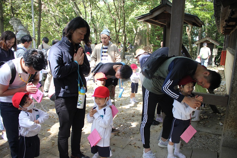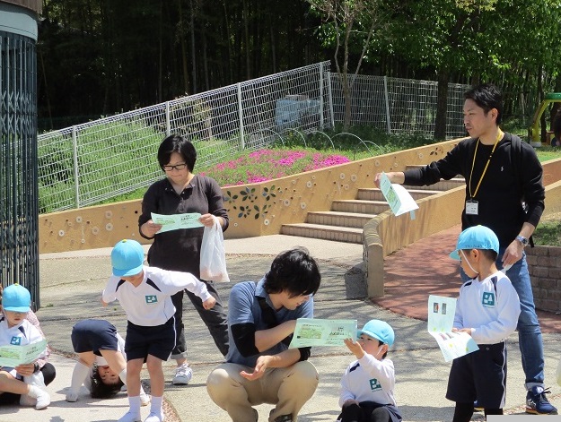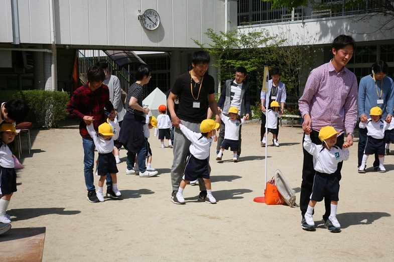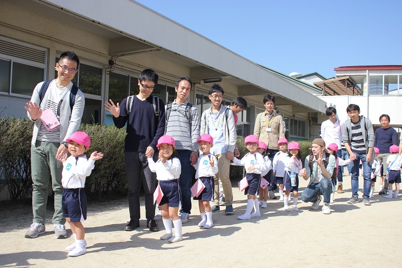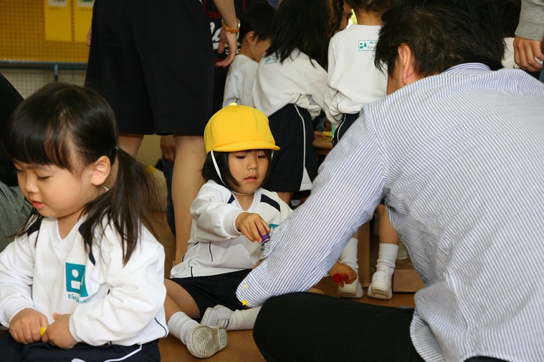 いっぱい遊んだ後は、お父さんと手を繋いで幼稚園へ戻ります。