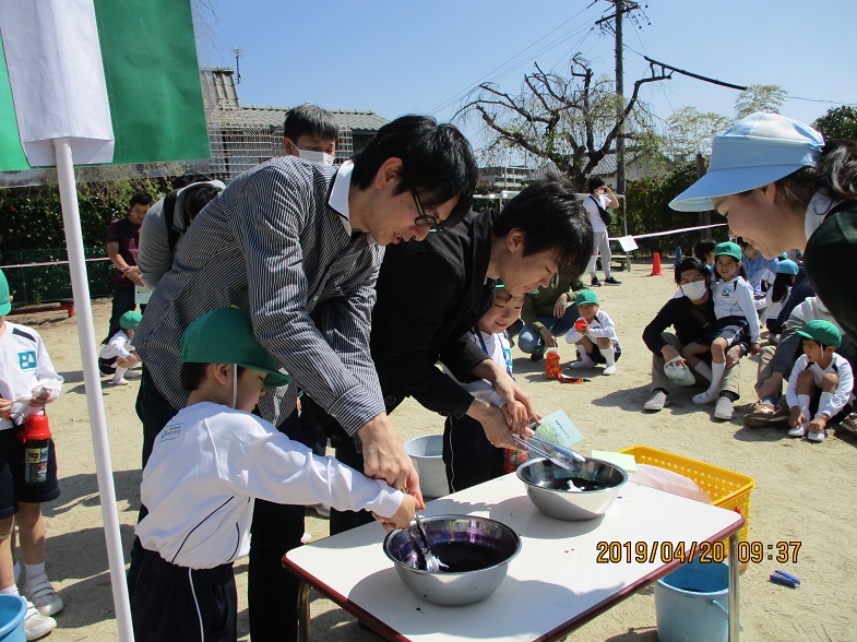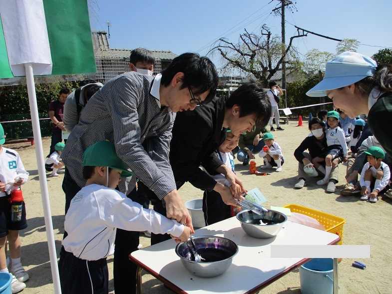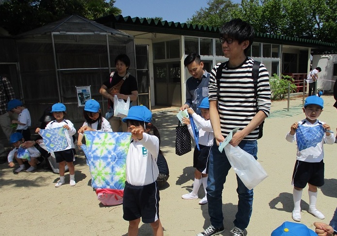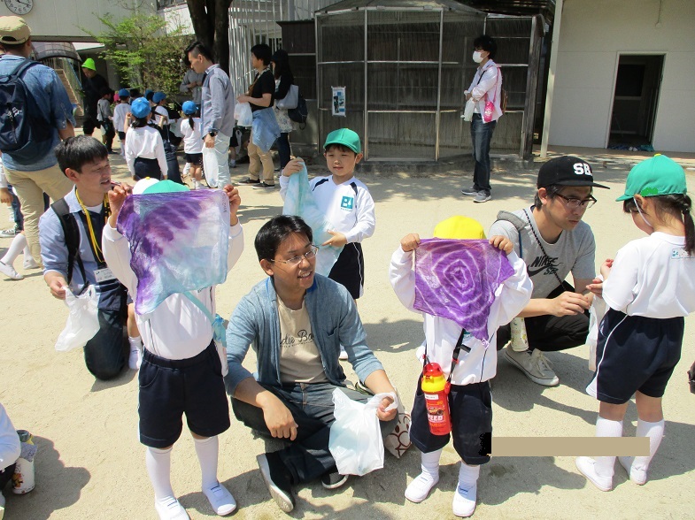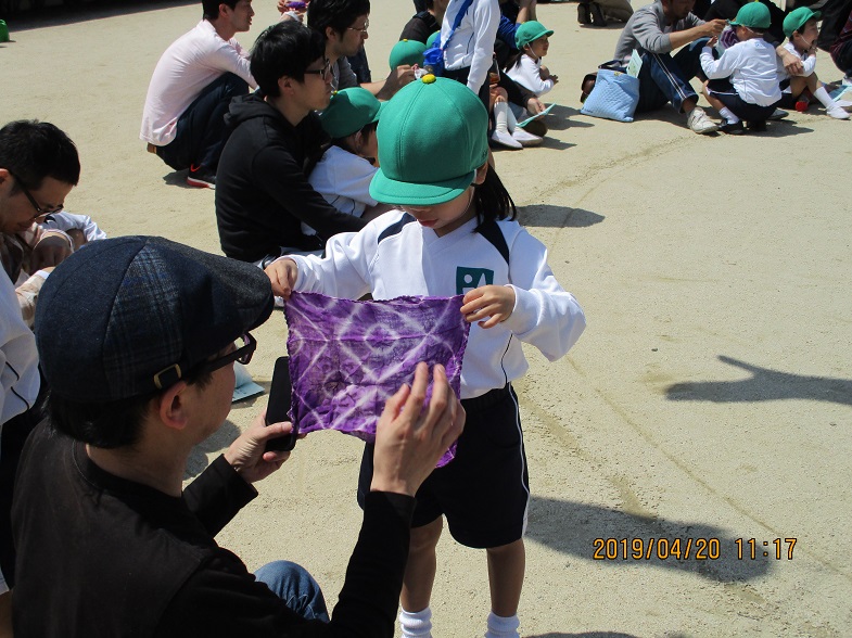お父さんやお友だちと絞り染めのハンカチを見せ合って、