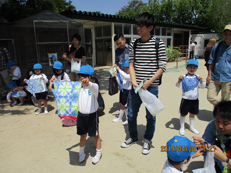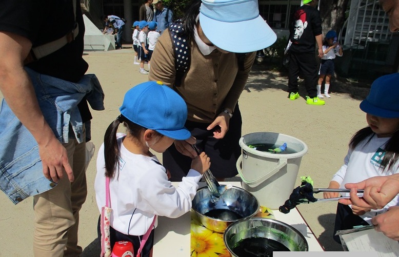 園に戻り、絞り染めの仕上がり具合を見てみることに!!