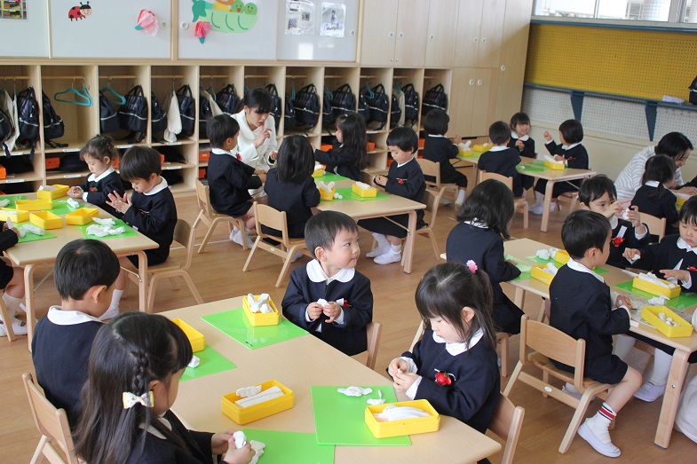 (事前にお家のほうでハンカチを絞って持ってきていただきました。)