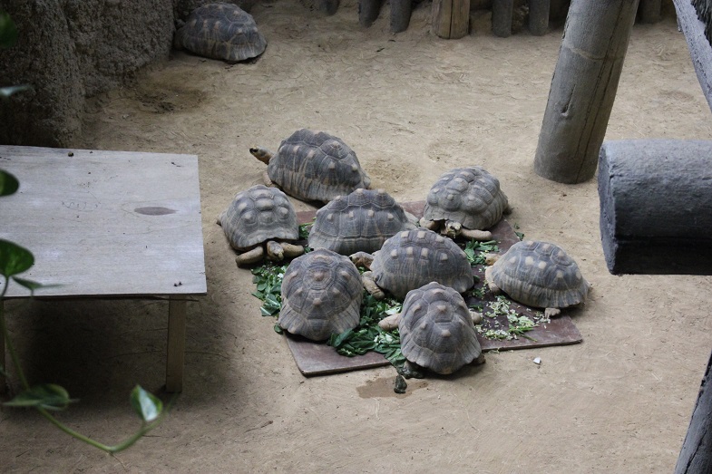 ウミガメの赤ちゃんを育てているコーナーでは・・・・
