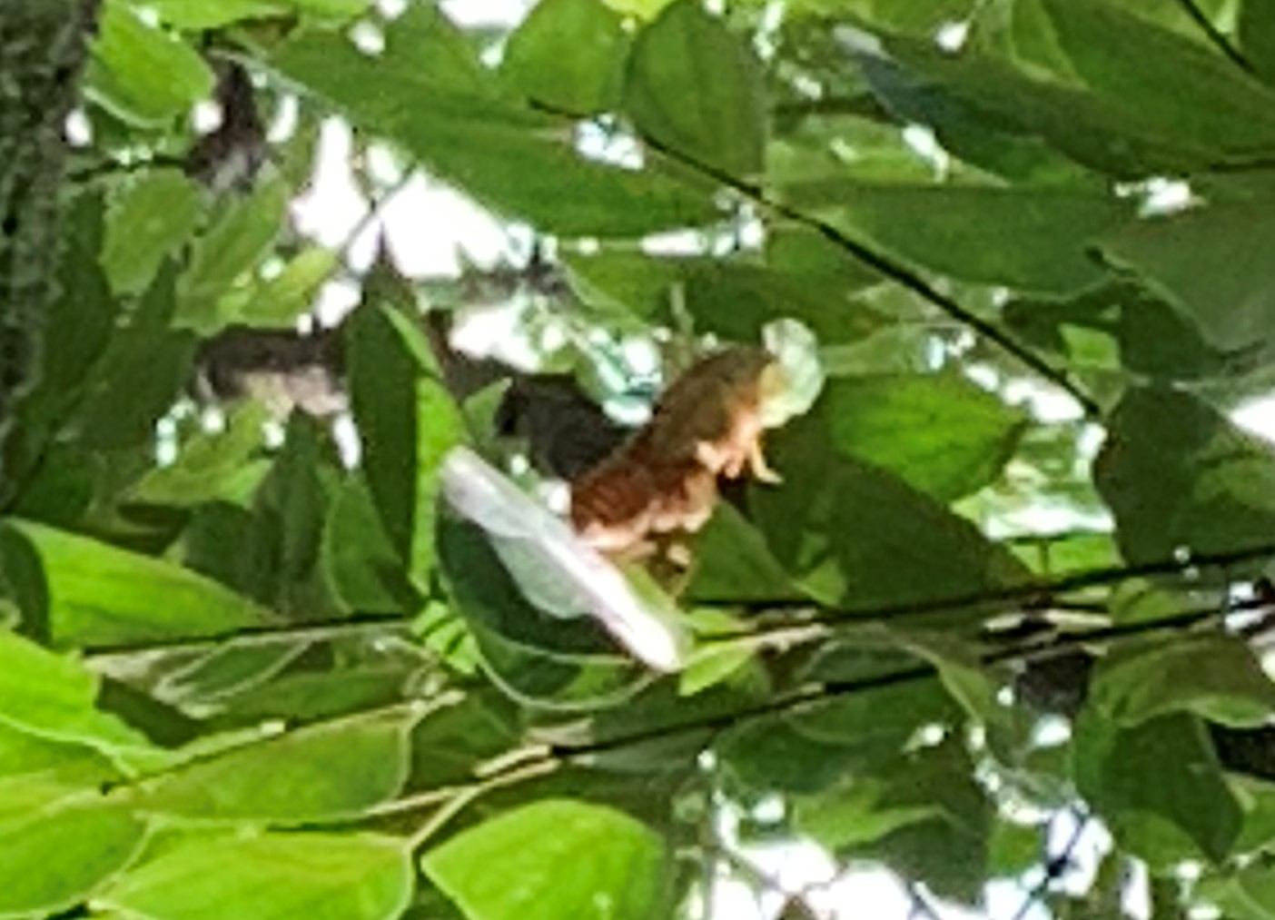 5メートルくらい上の葉っぱの茂みまで行ってしまいました。
