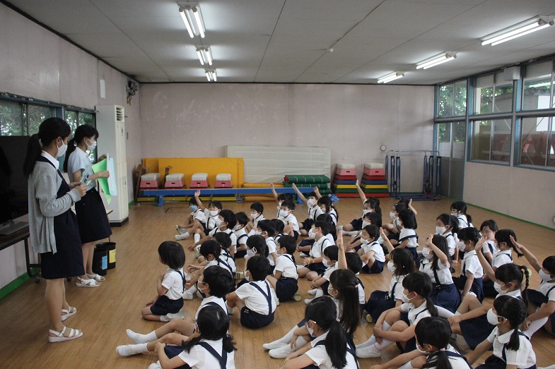マット運動の最後は、みんなでゴロゴロ。