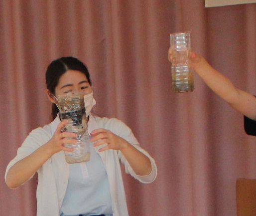 最後は講師の先生と力を合わせて、ヘビの顔を載せると・・・