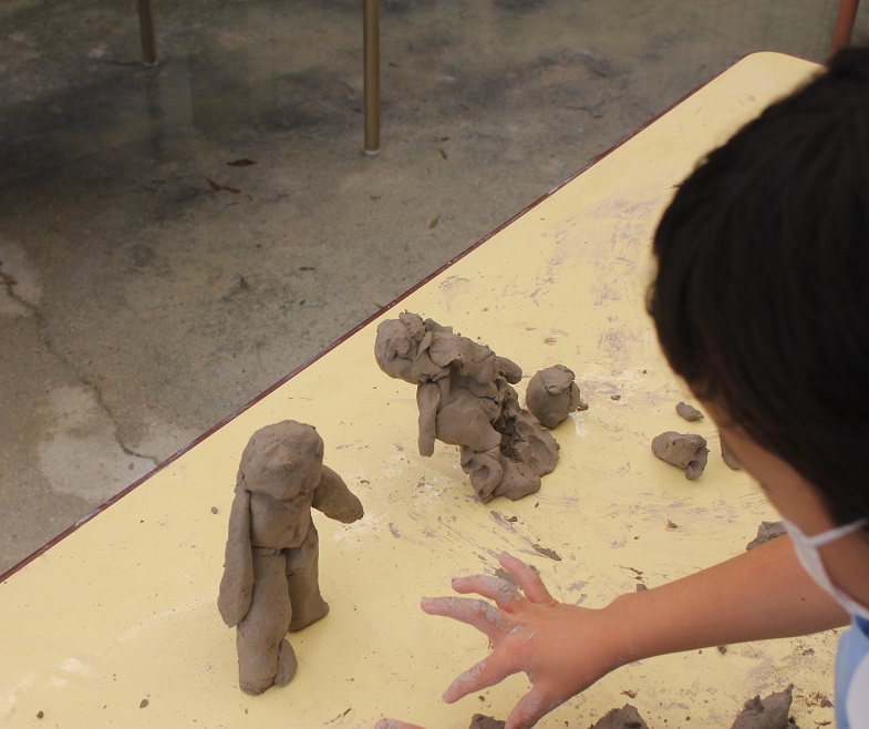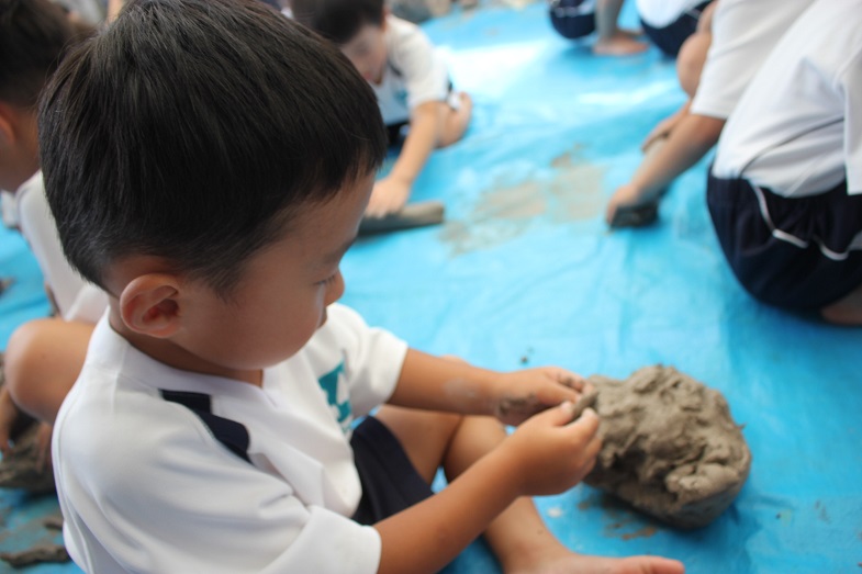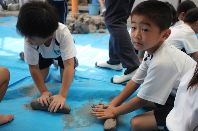 今回の土粘土では、裸足になって遊びました。