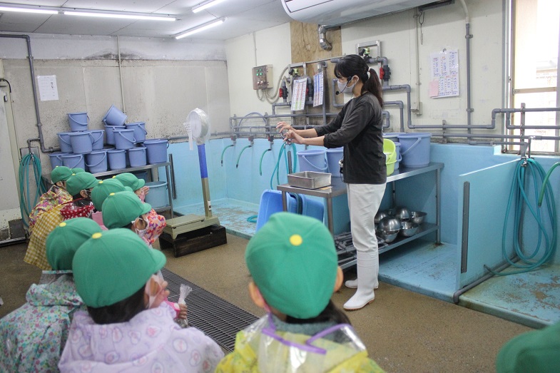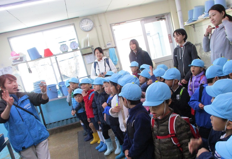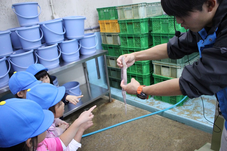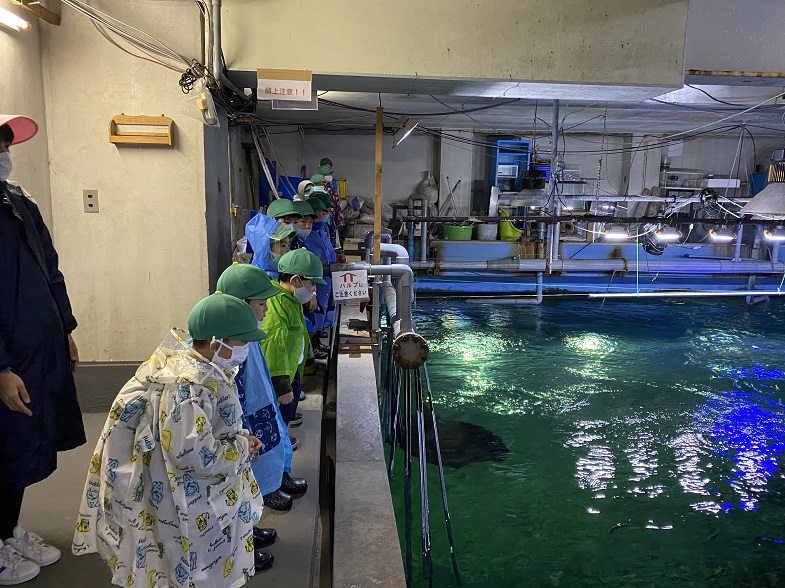 海の生き物たちの餌のお話を聞いたり、