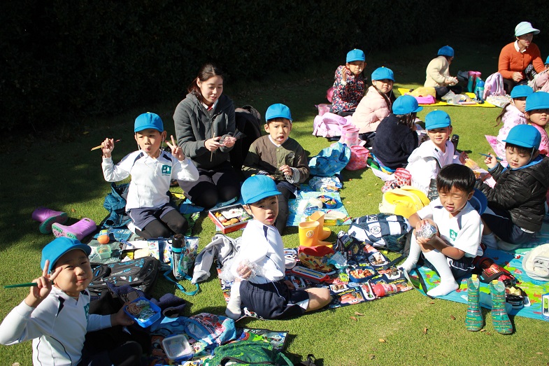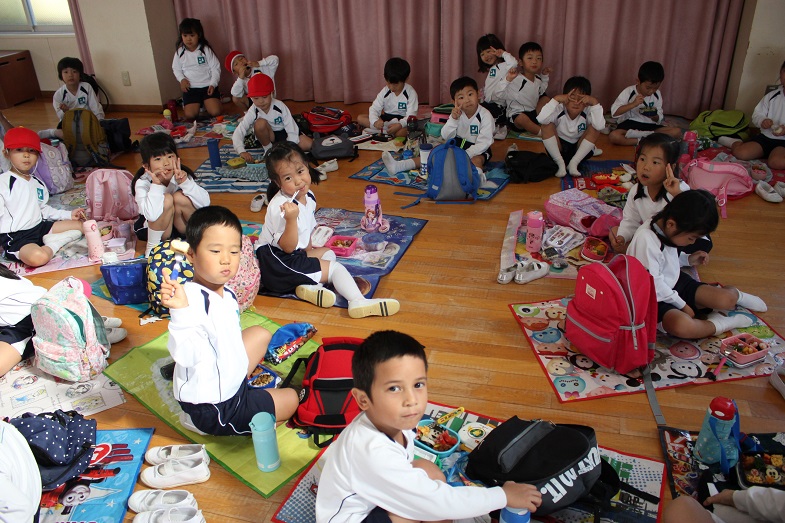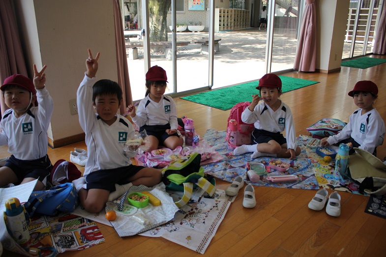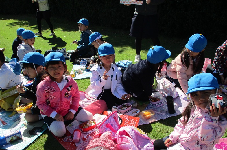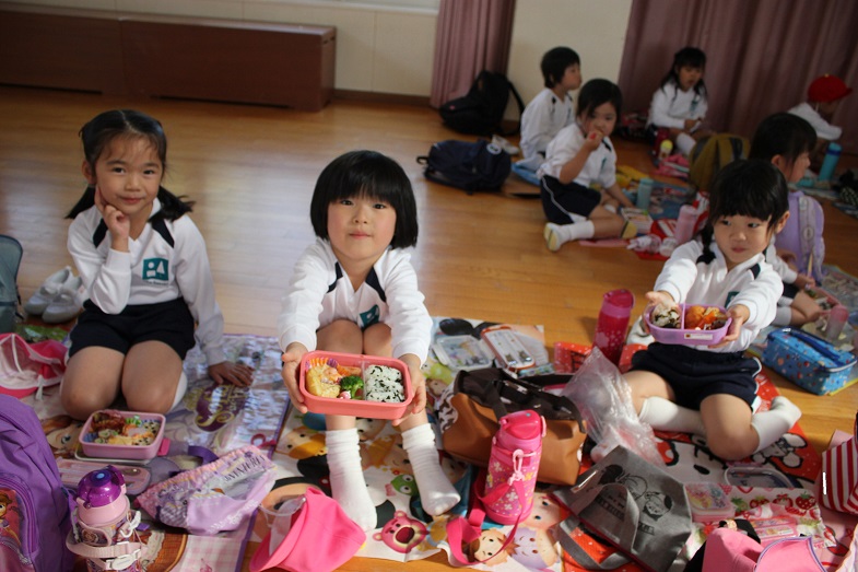 お昼ご飯は、おうちの人が作ってくれたお弁当を食べましたね。