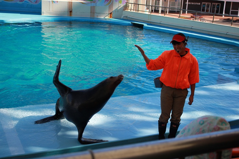 ビーチランドの職員の方が、海の生き物たちの命が