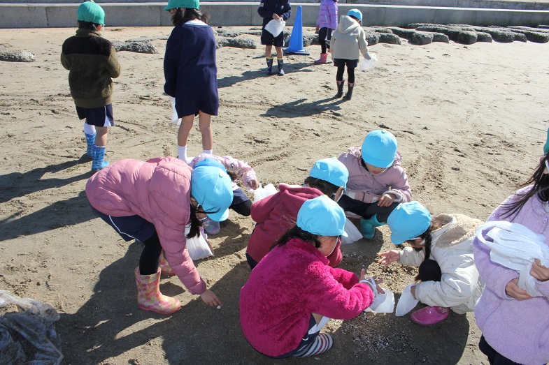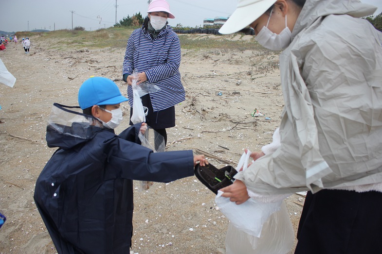 砂浜には、残念ながらたくさんのゴミが落ちていました。