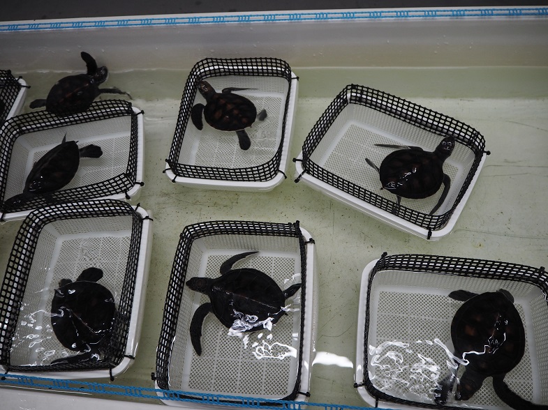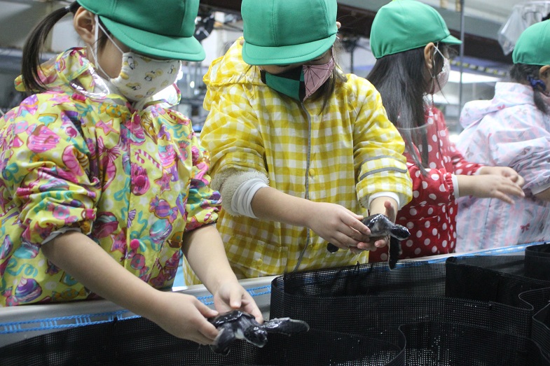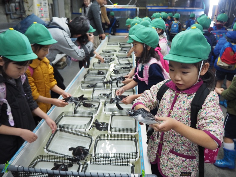 ウミガメの赤ちゃんを実際にさわらせてもらったり、