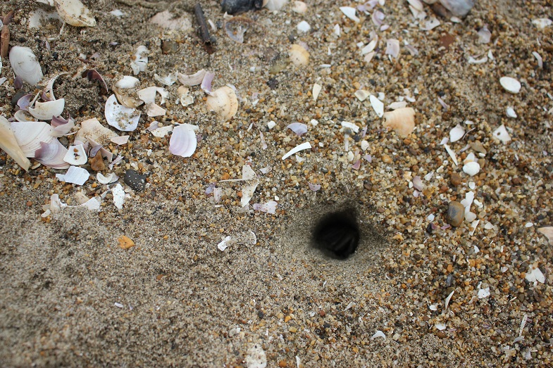 穴の中にカニが入っていったよ!