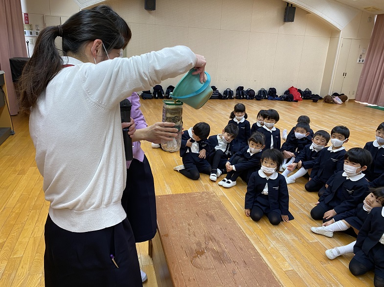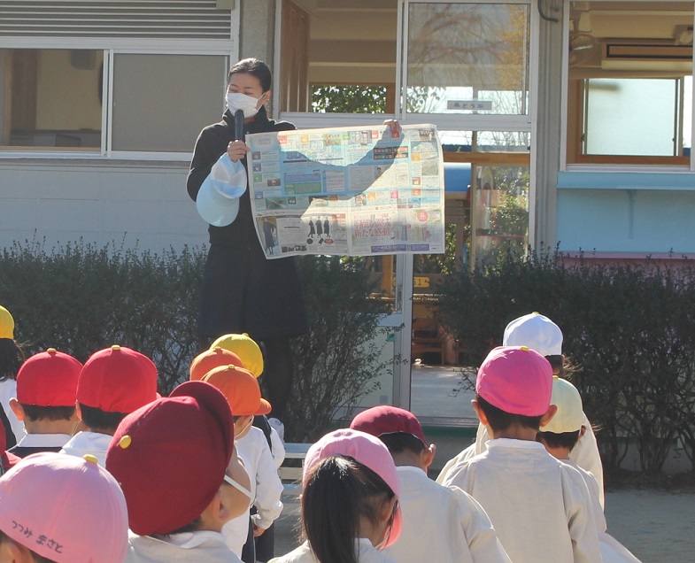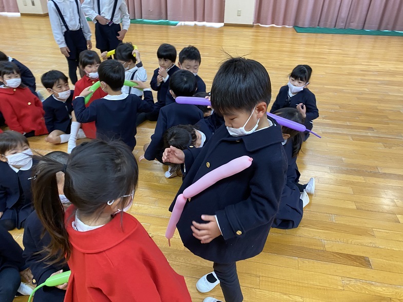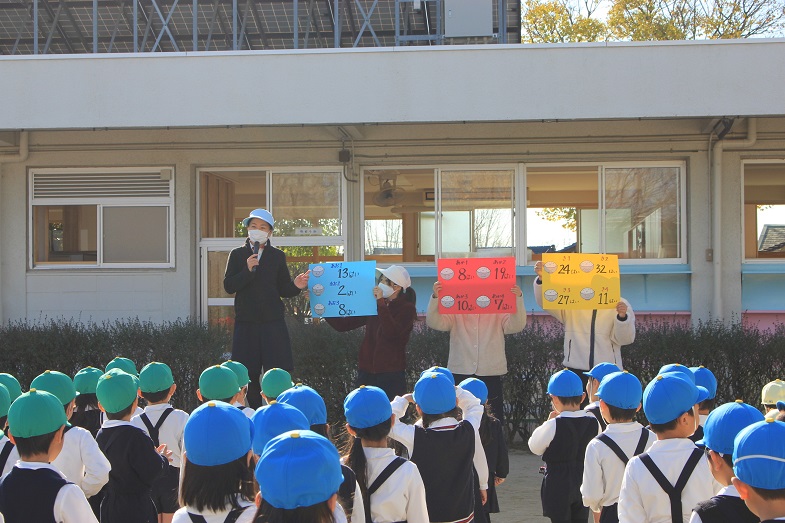 クラスごとに終わりの式で園長先生のお話を聞きました。