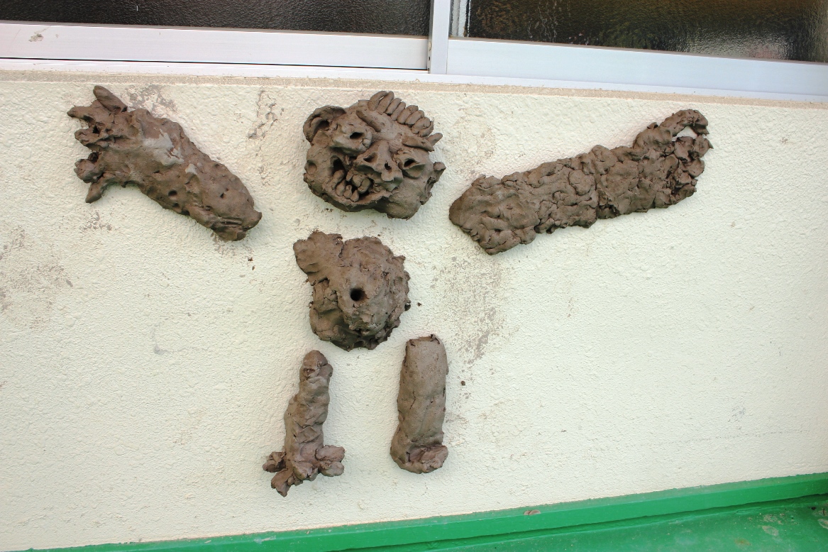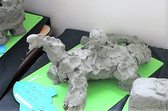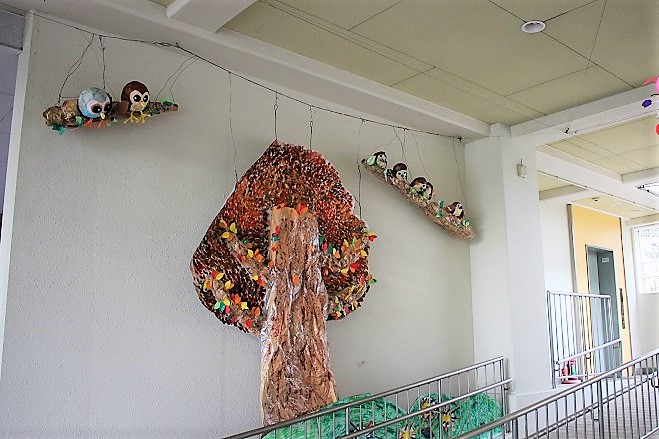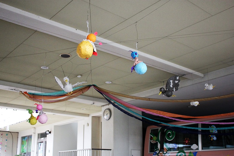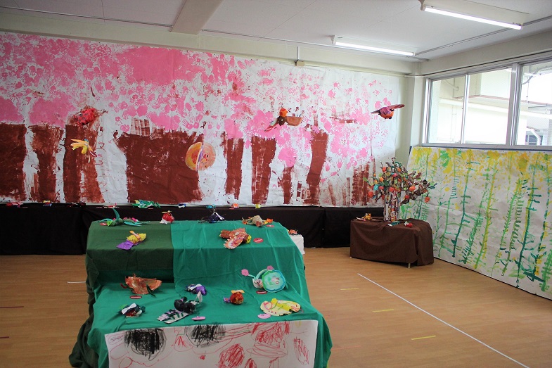 個々の立体作品は、各学年ごとのテーマで作ったものです。