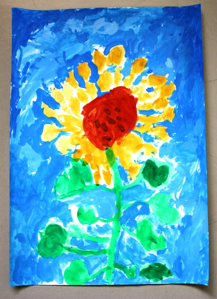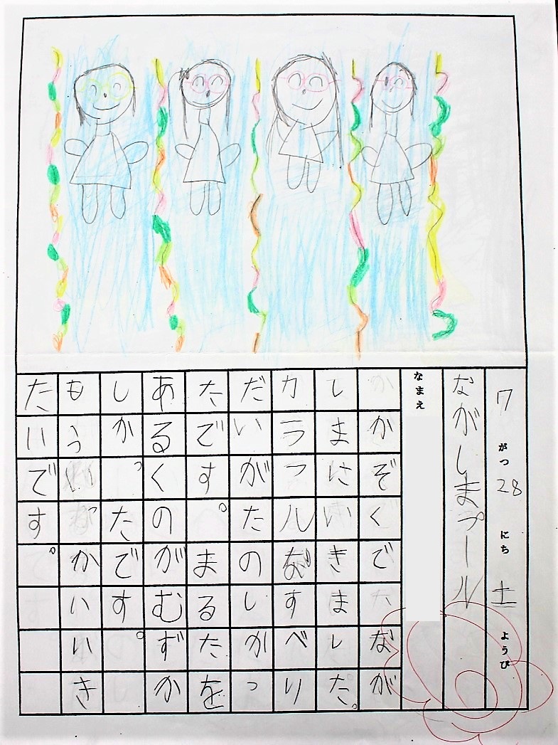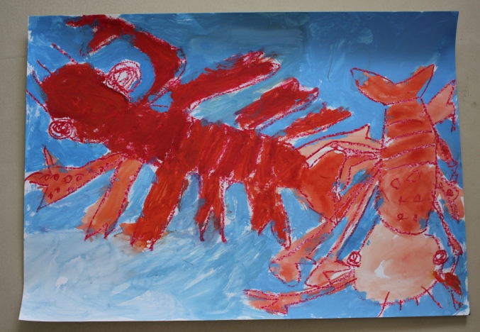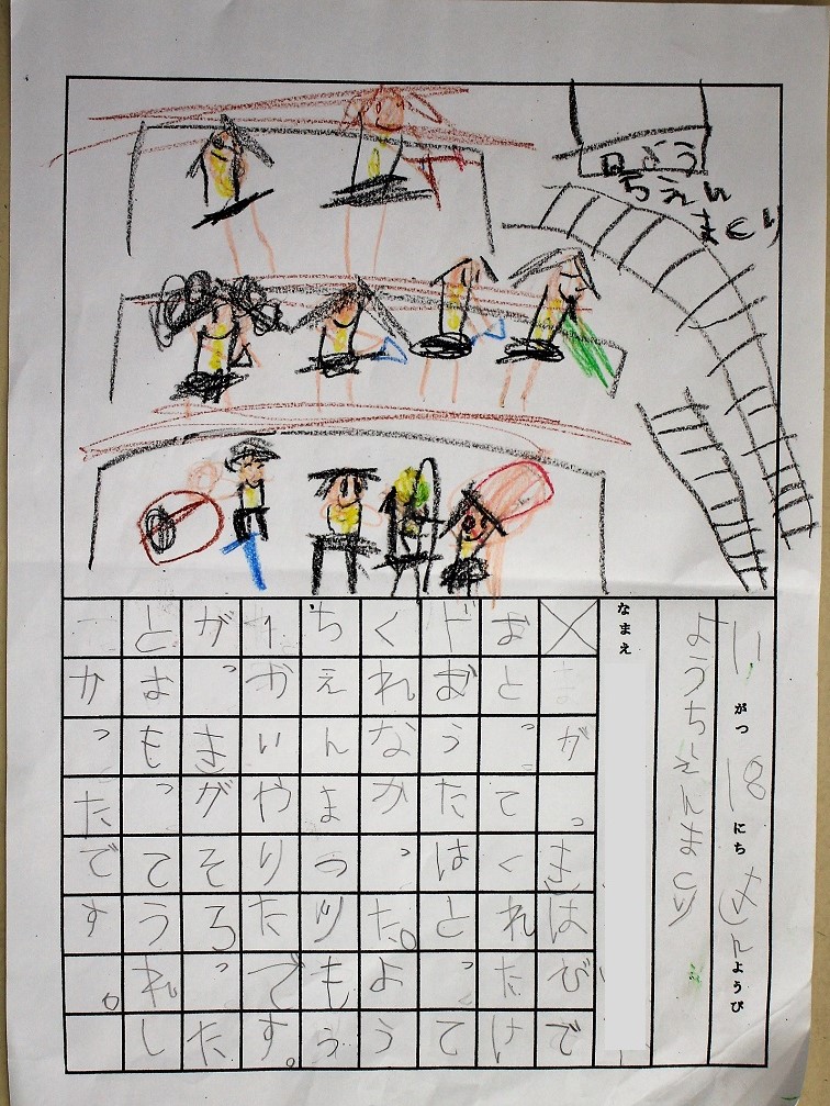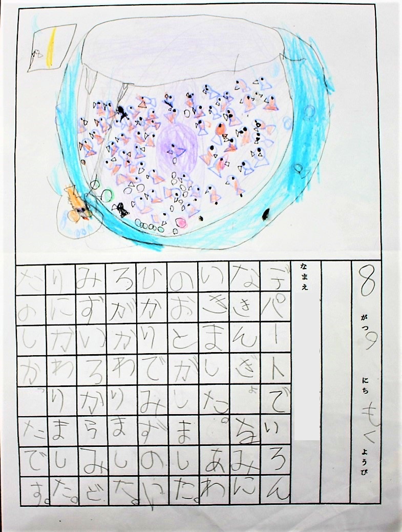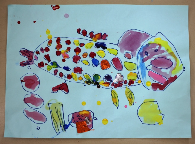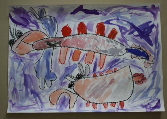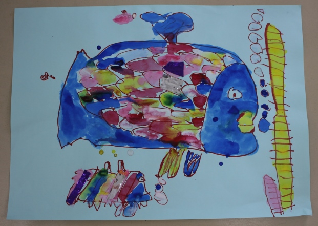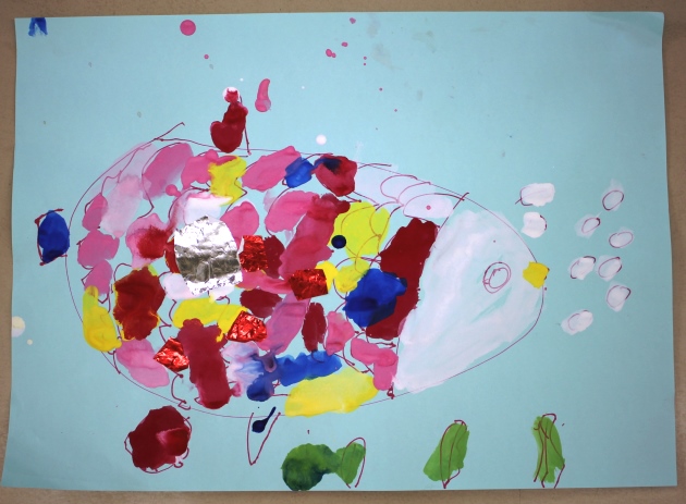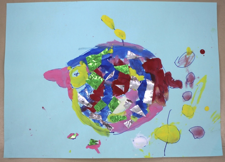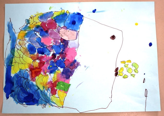 7月8月の縦割り保育での絵の具あそびで描いたもの。