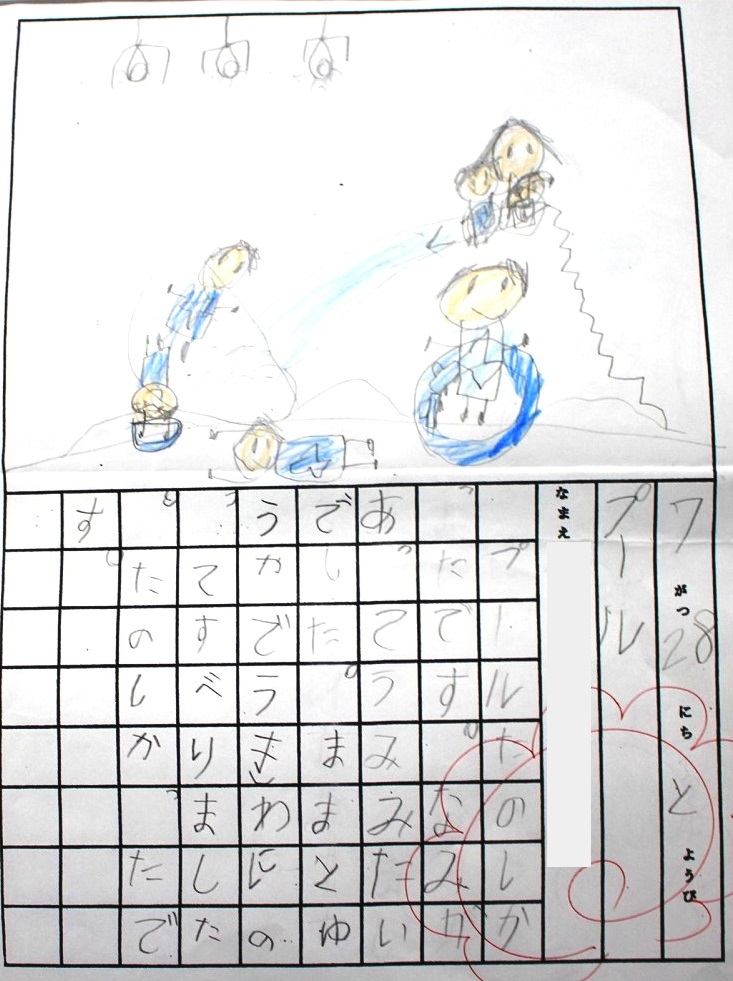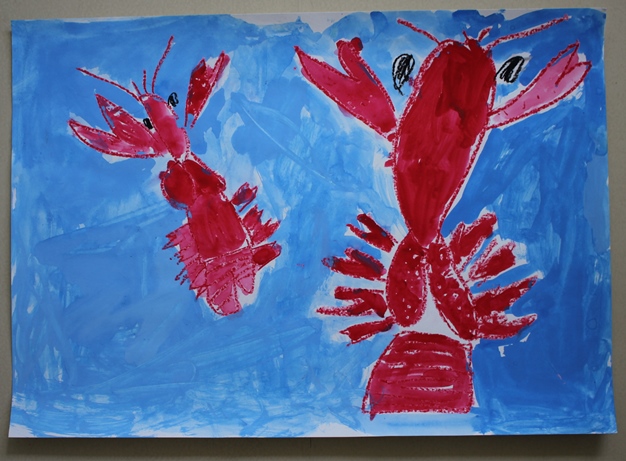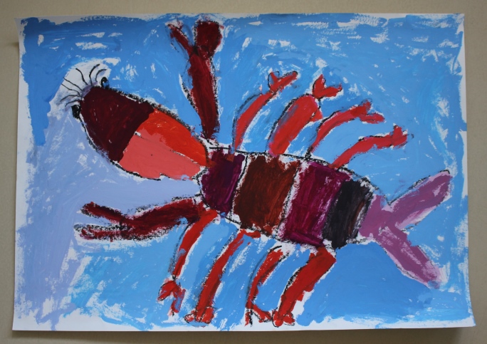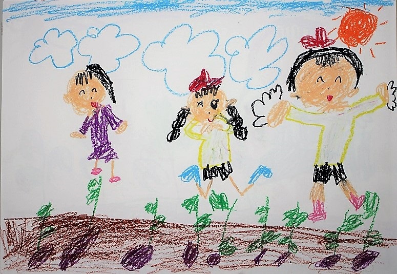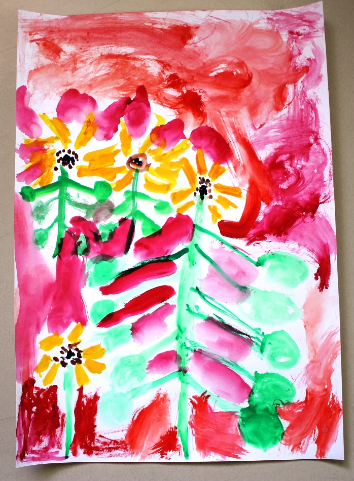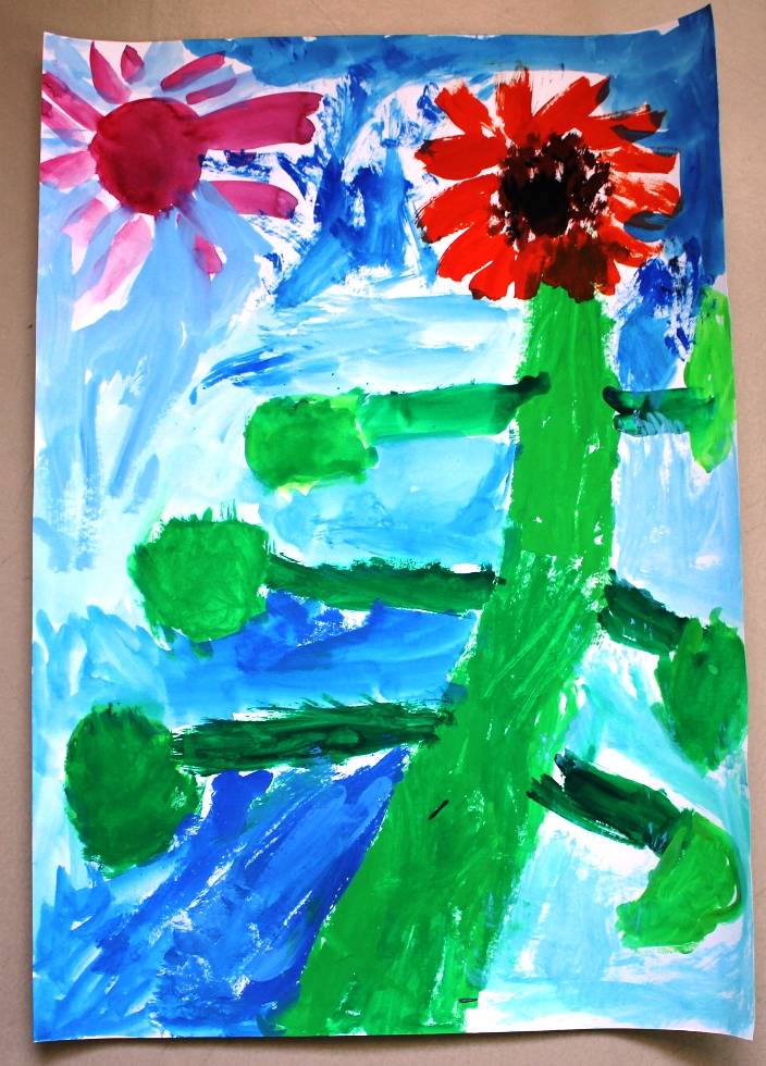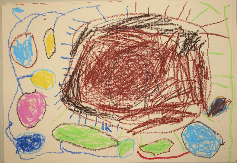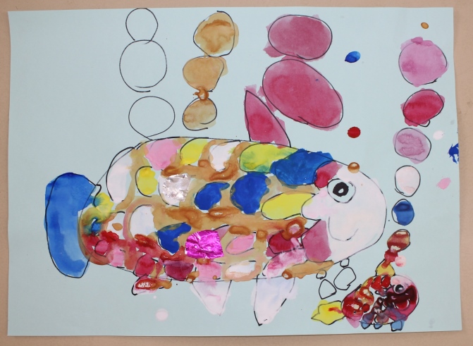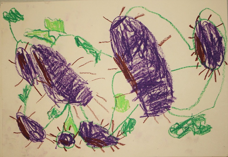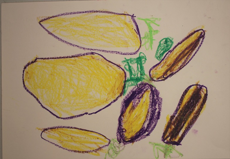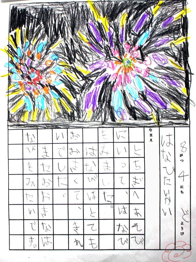 7月8月の縦割り保育での絵の具あそびで描いたもの。