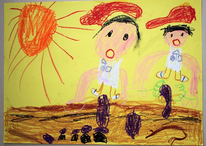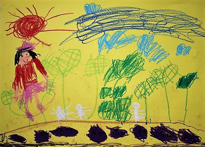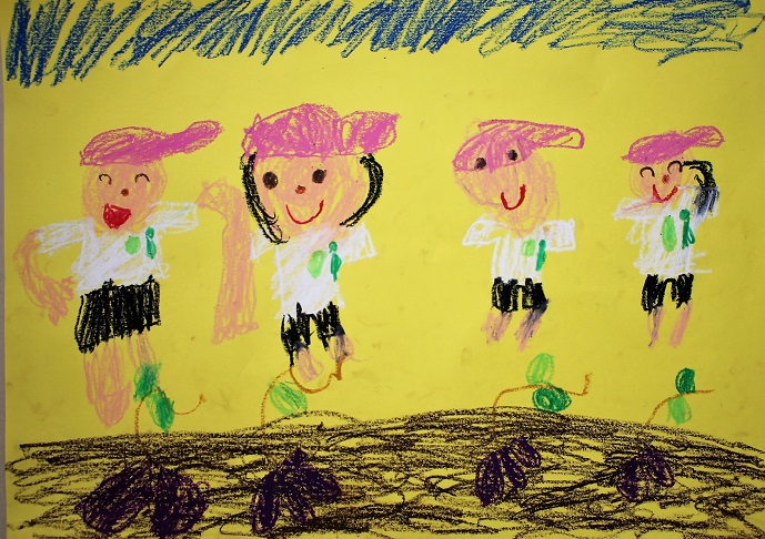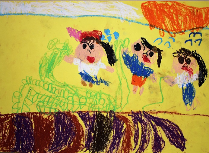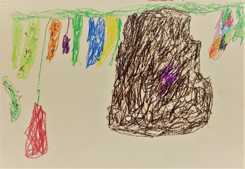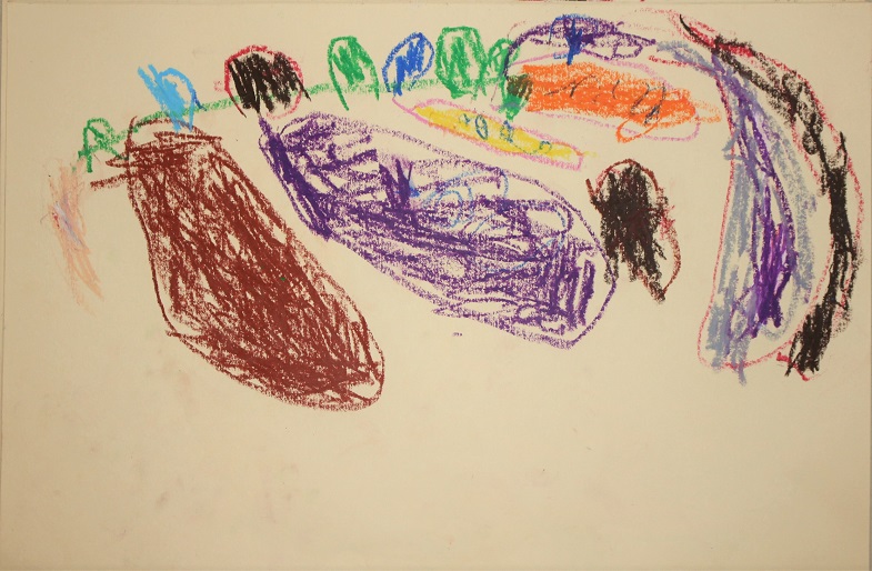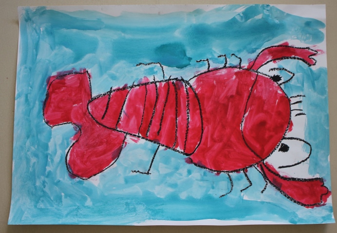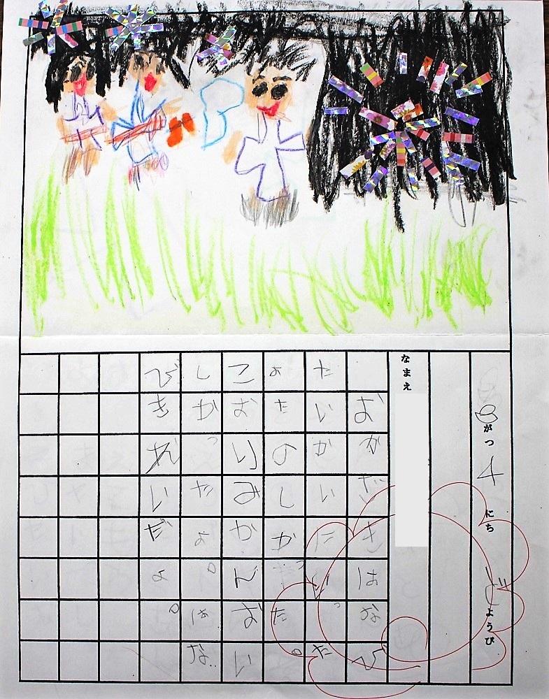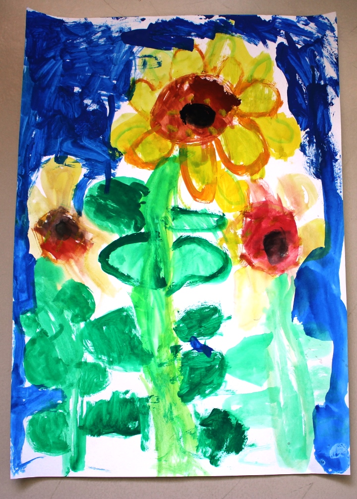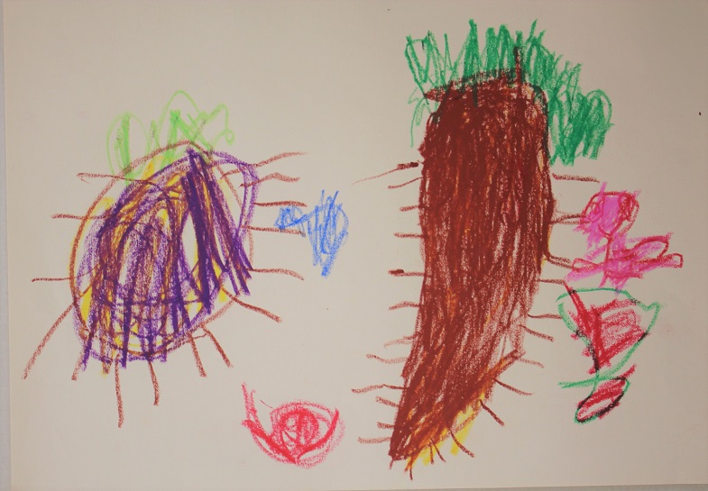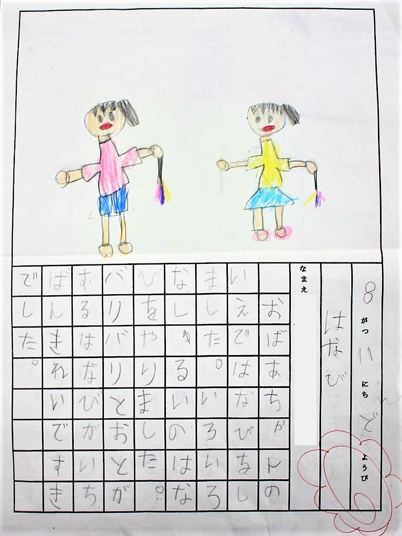 7月8月の縦割り保育での絵の具あそびで描いたもの。
