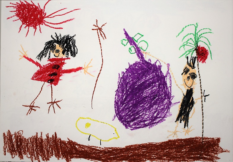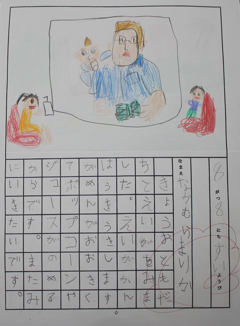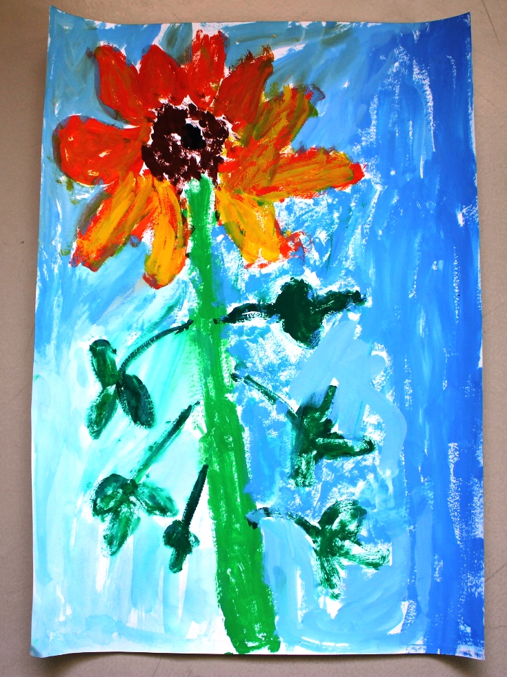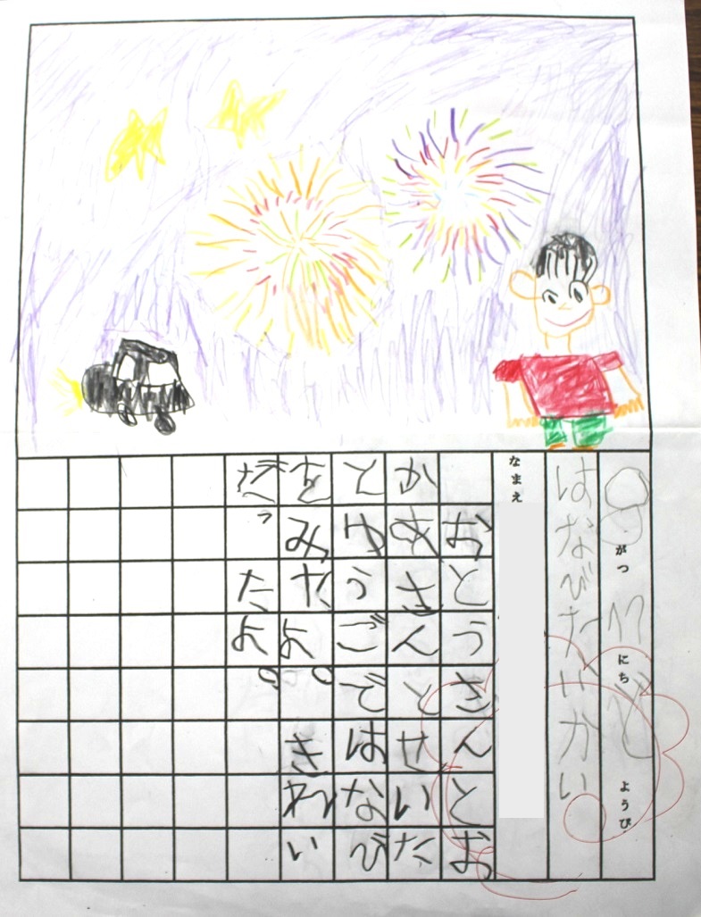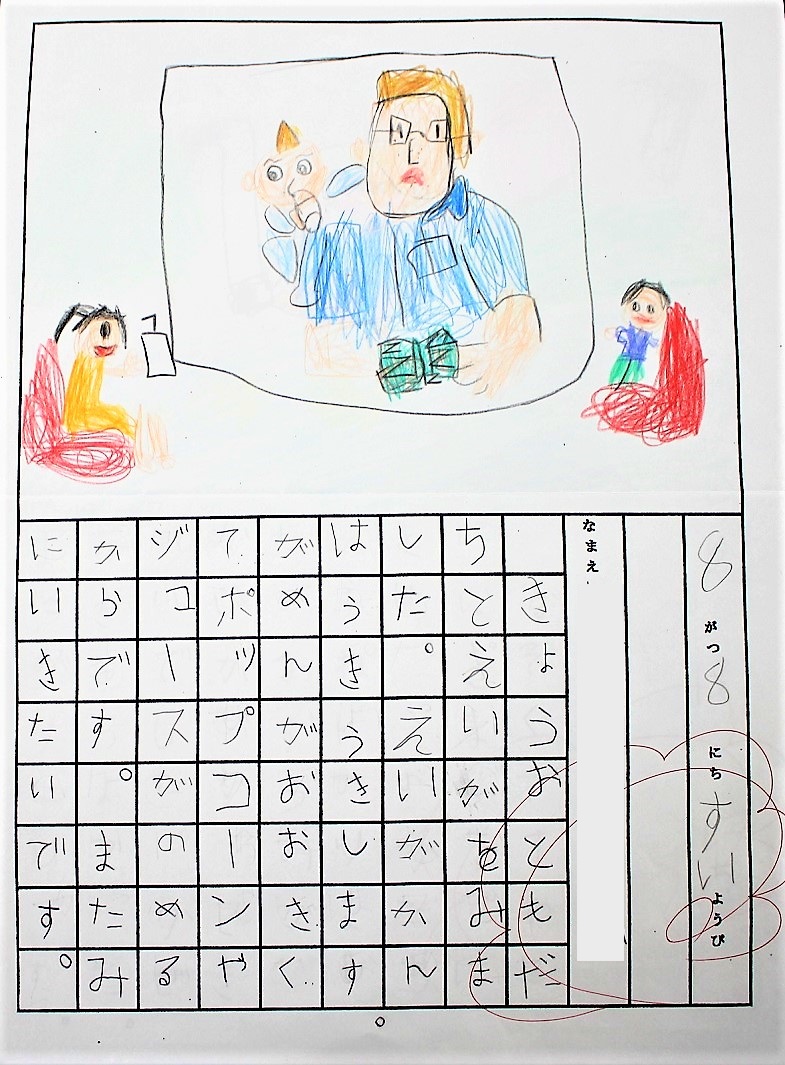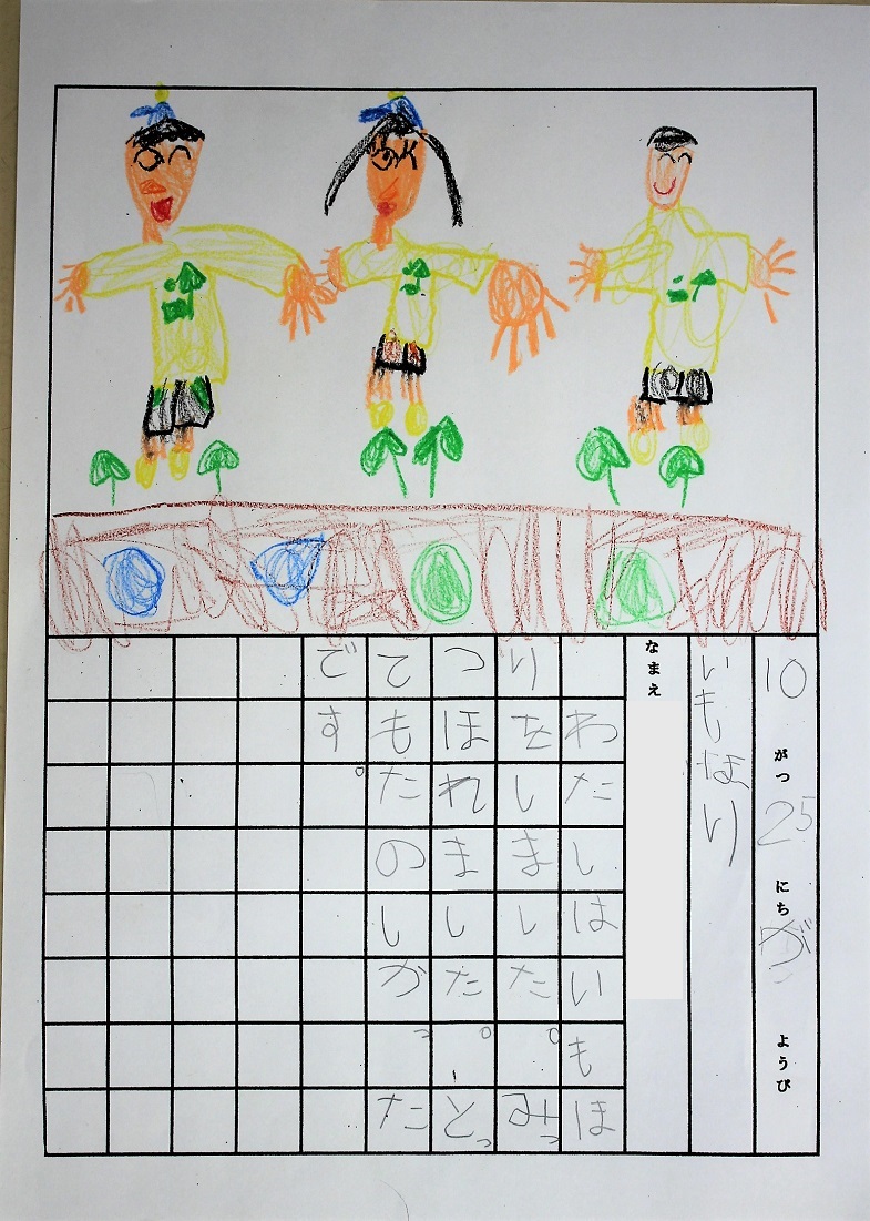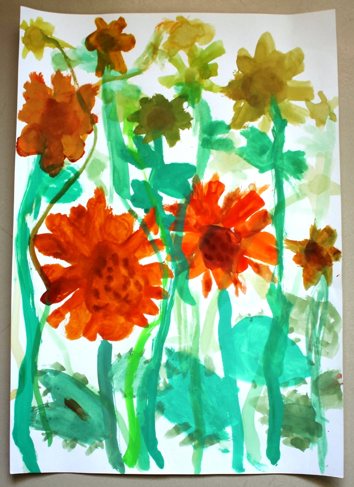 7月8月の縦割り保育での絵の具あそびで描いたもの。
