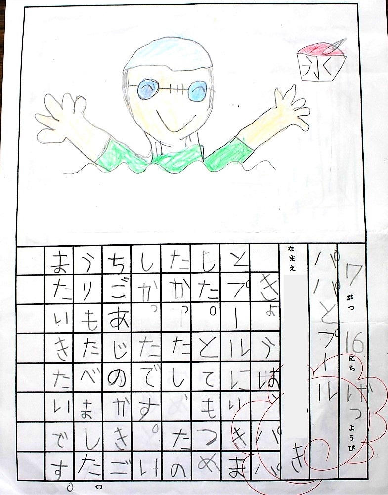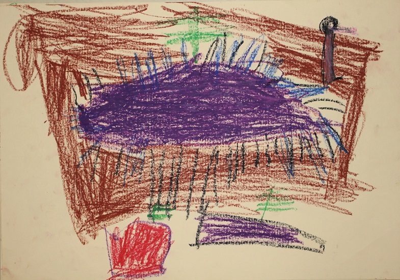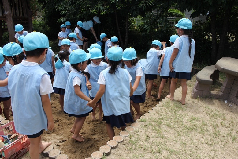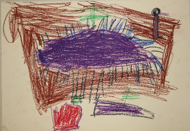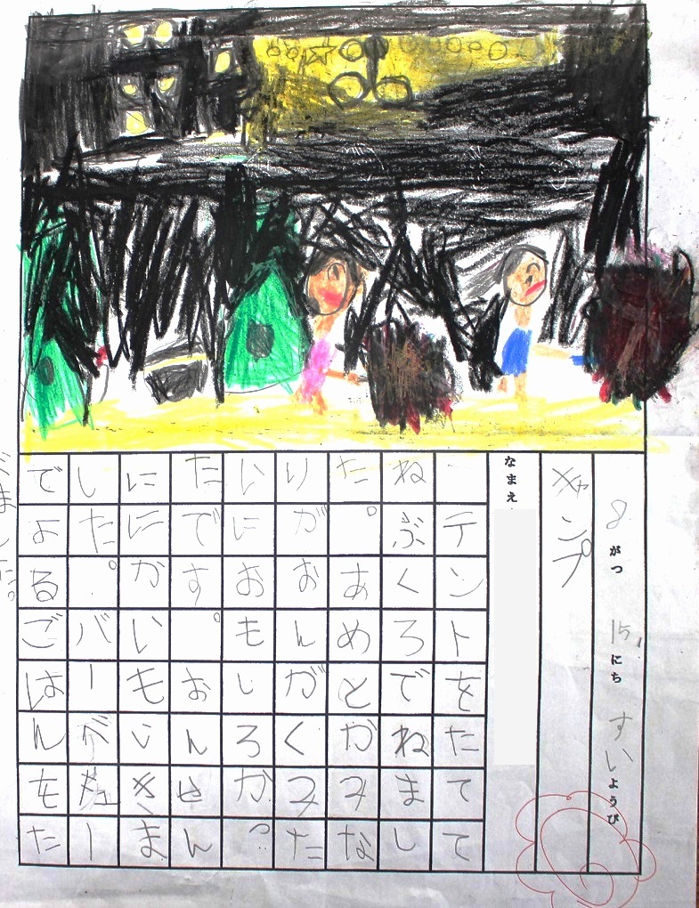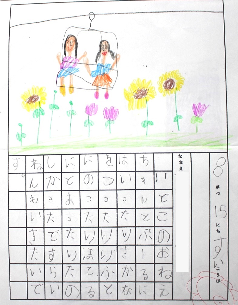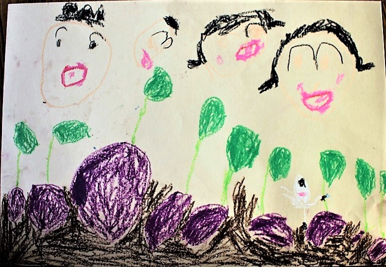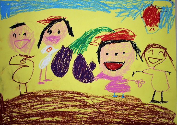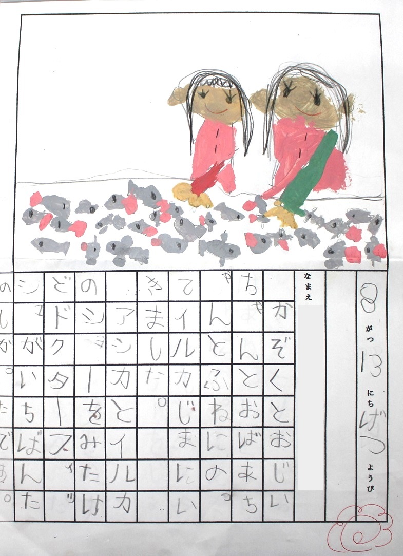 7月8月の縦割り保育での絵の具あそびで描いたもの。