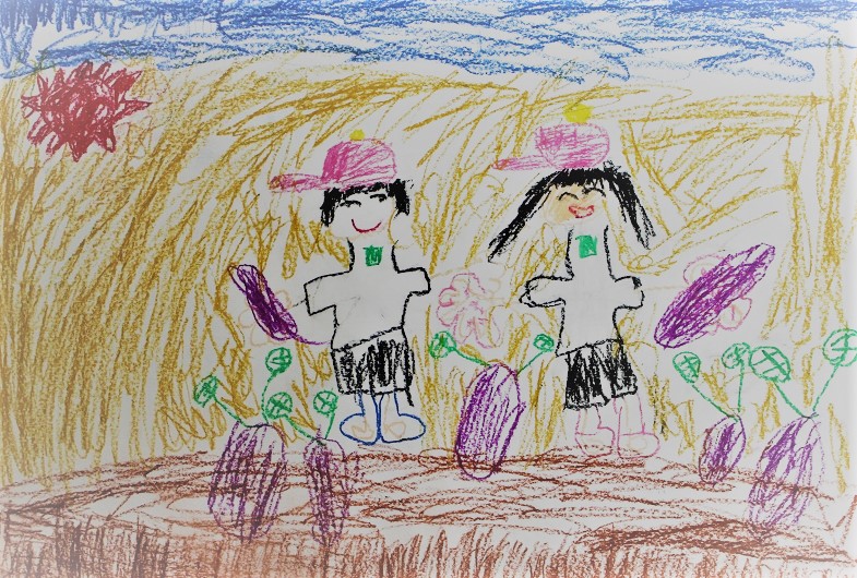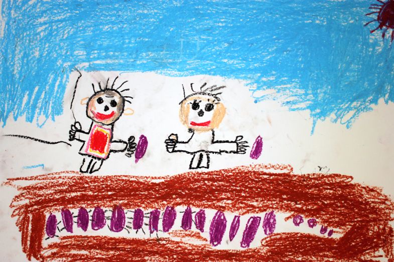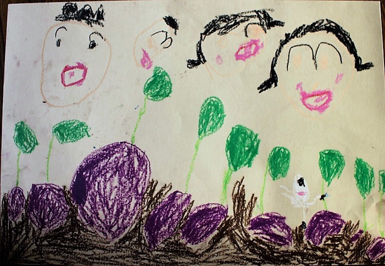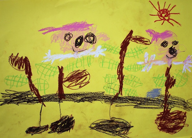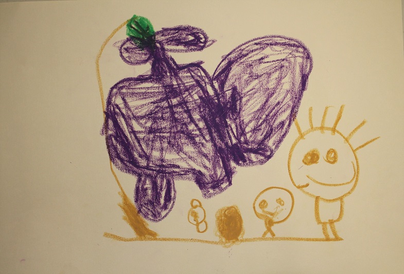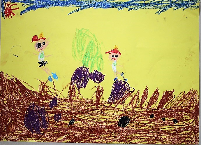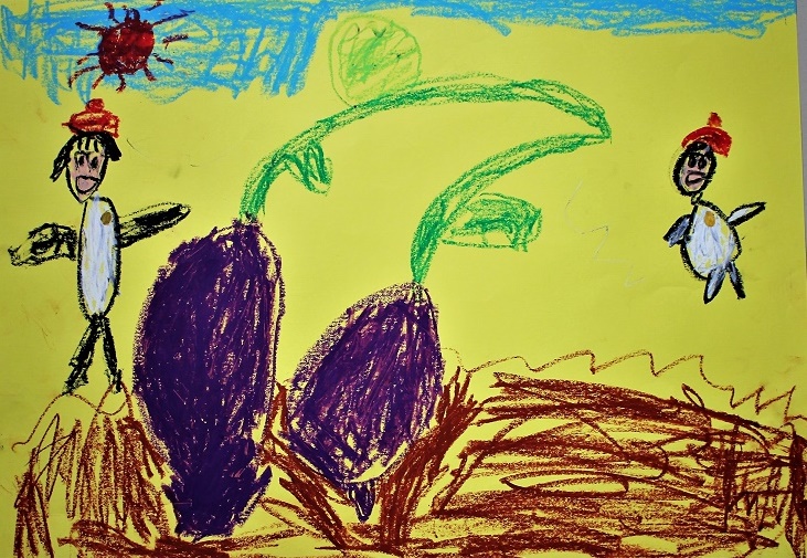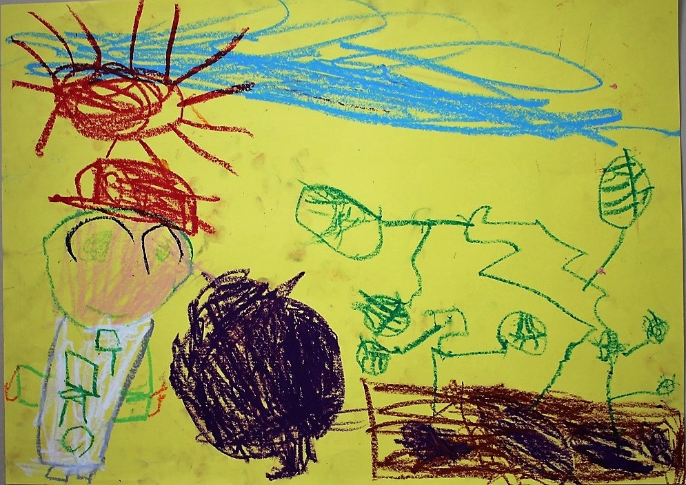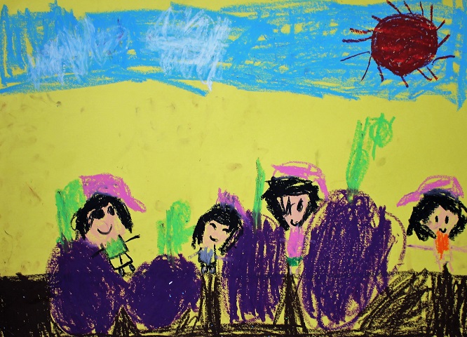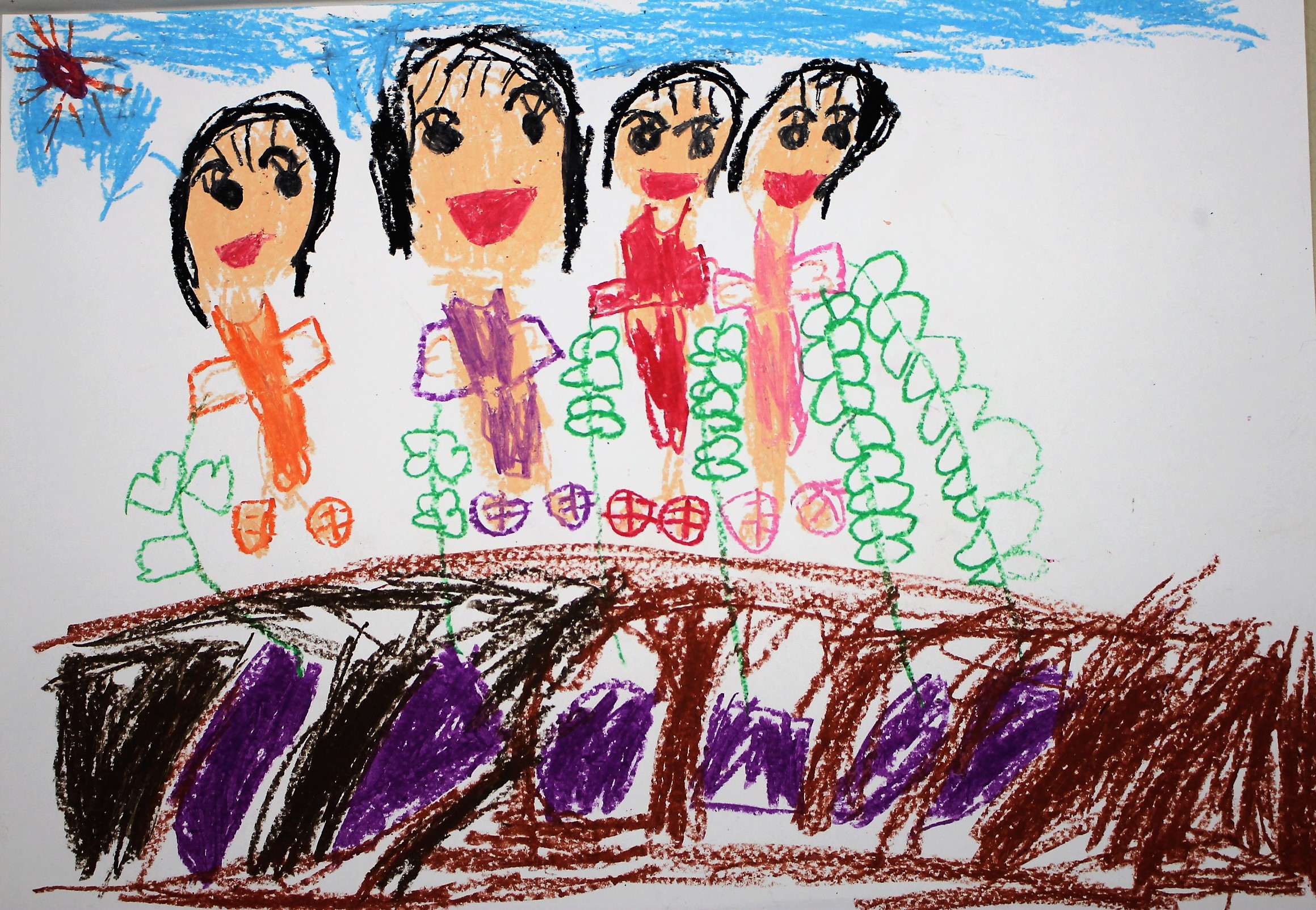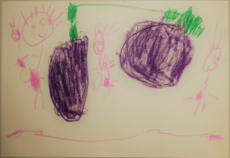 7月8月の縦割り保育での絵の具あそびで描いたもの。