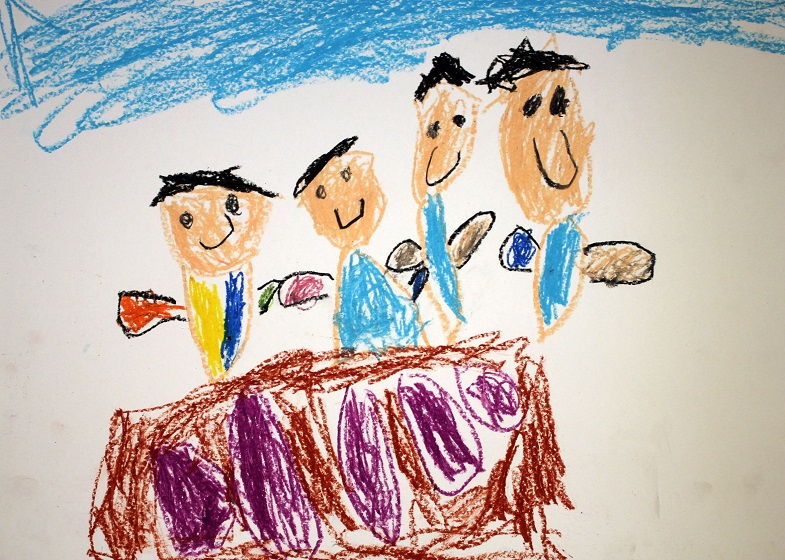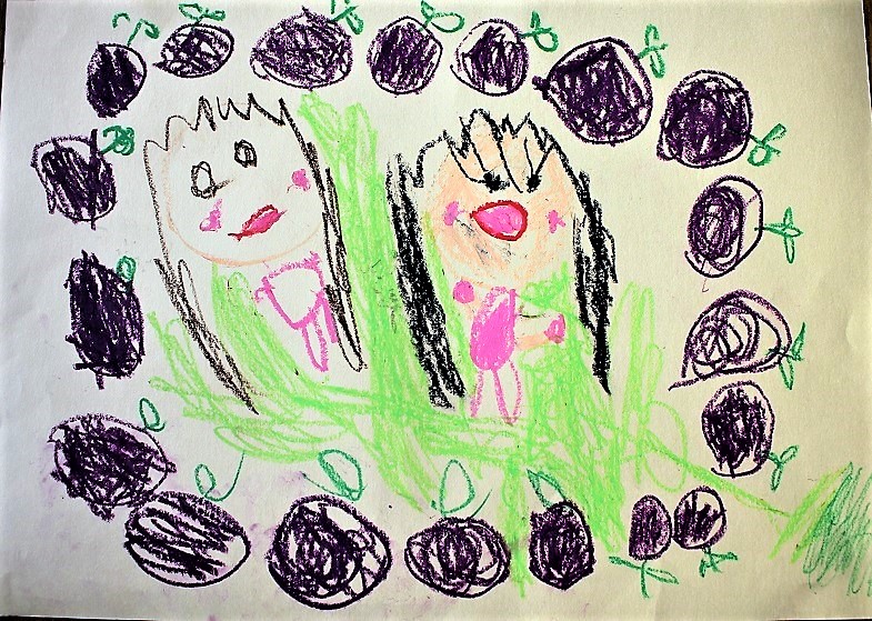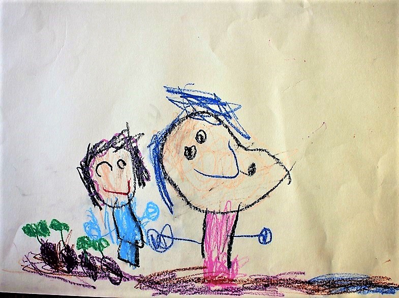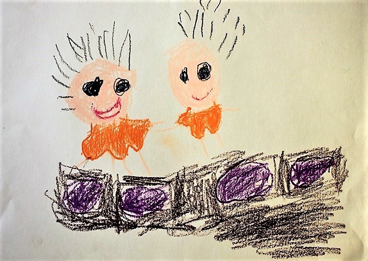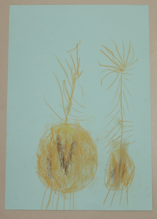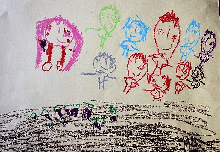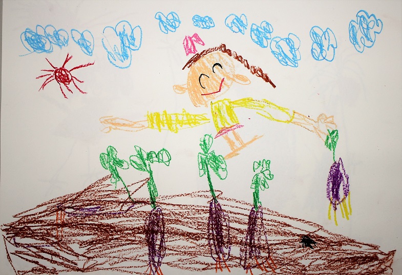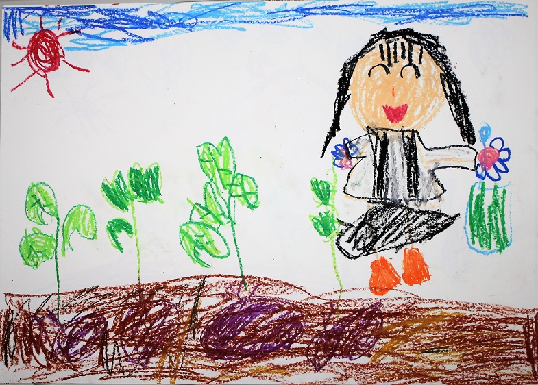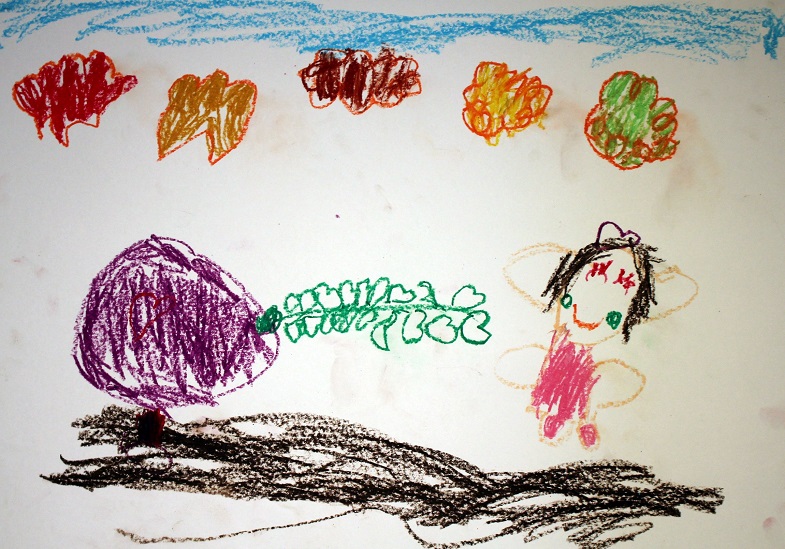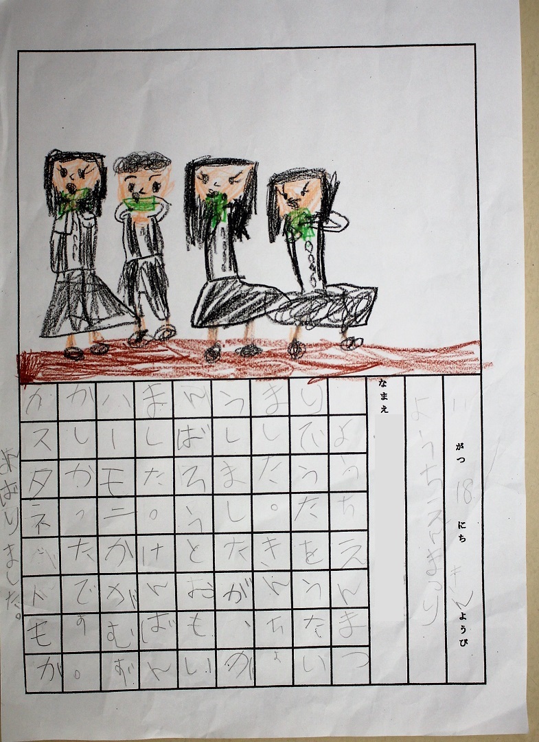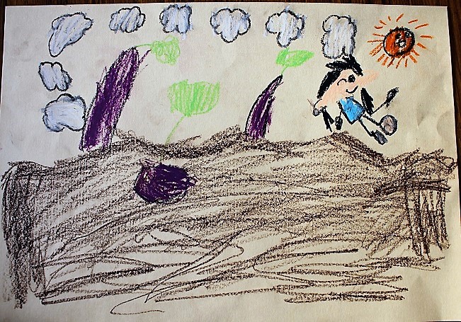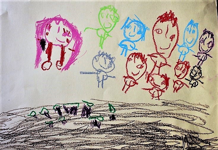 7月8月の縦割り保育での絵の具あそびで描いたもの。