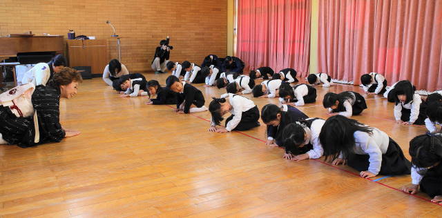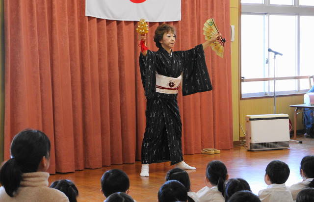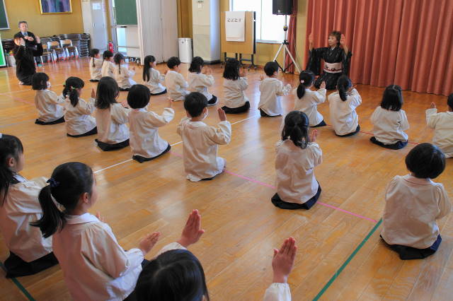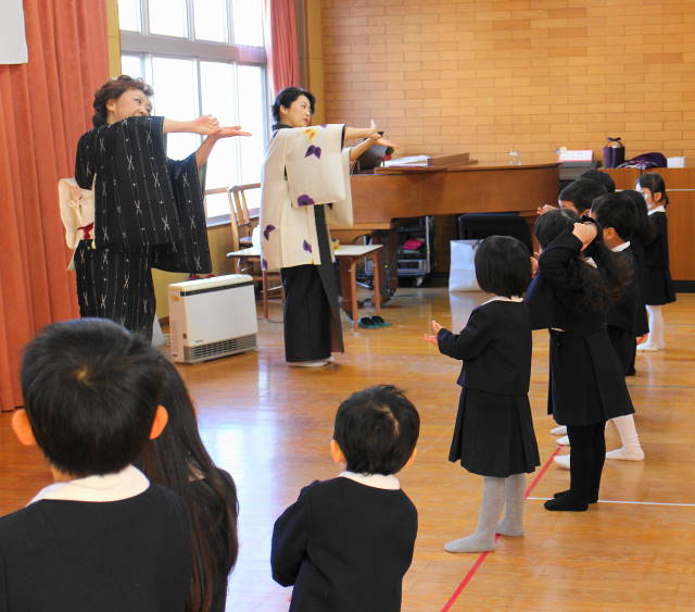 見たことのない鈴と扇子を使って踊る西川先生の姿に、子どもたちの目線は釘付け!!みんなよりも小さい頃から日本舞踊を習い始めたんですって!!素晴らしいですね。