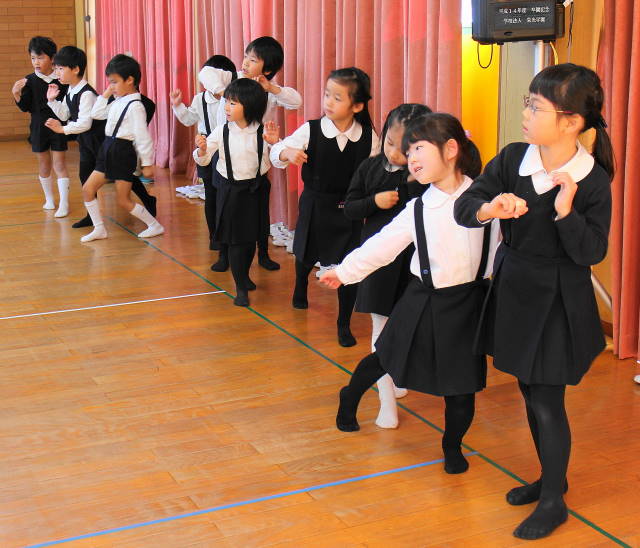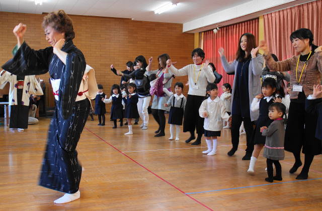 次に、踊ってみましょう。今日の踊りは、『おさるのかごや』です。