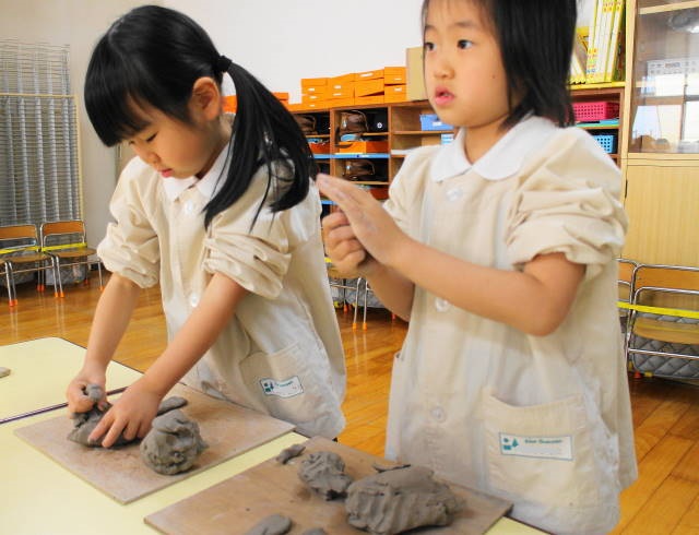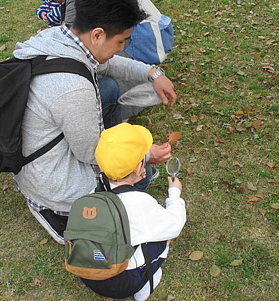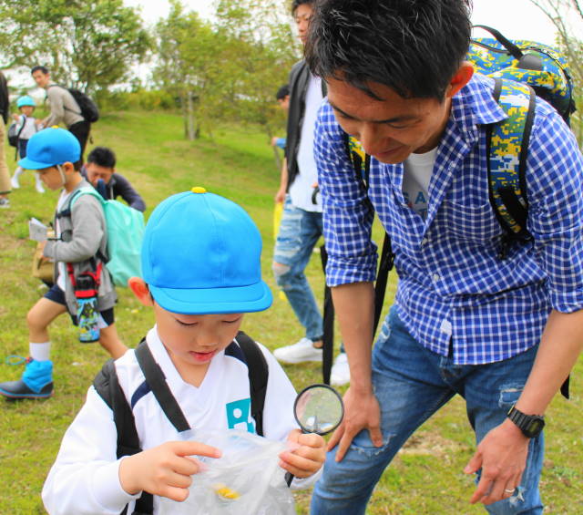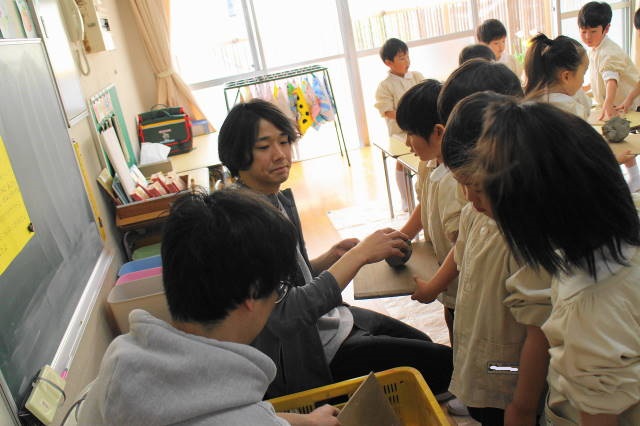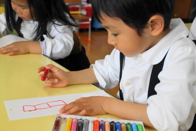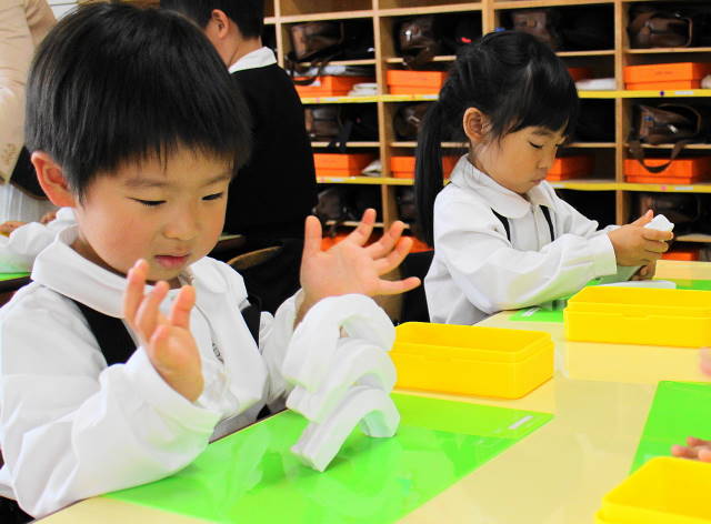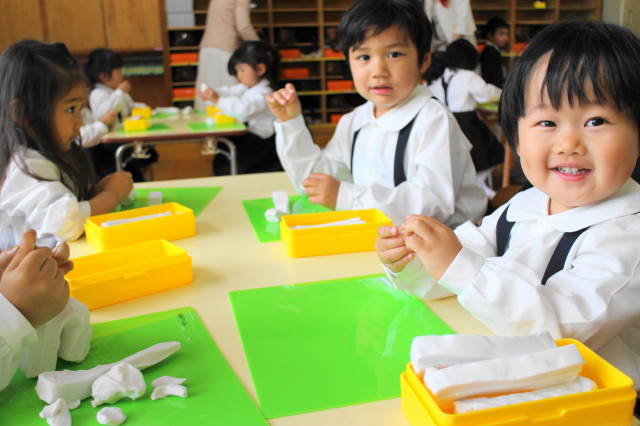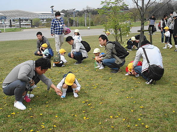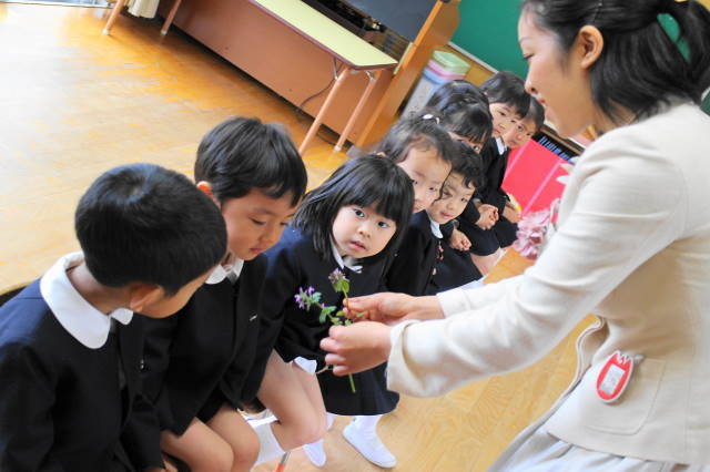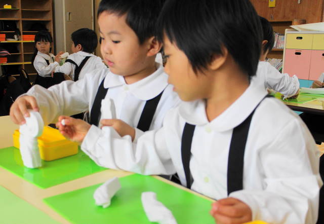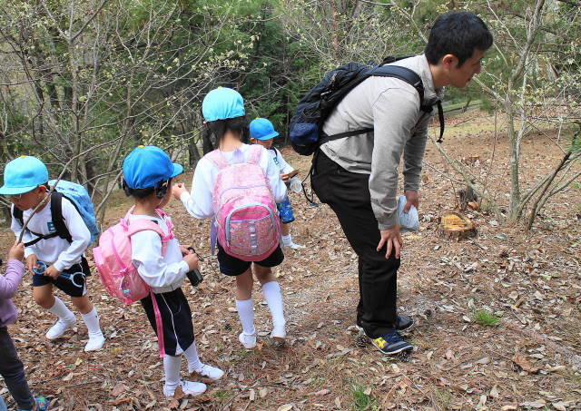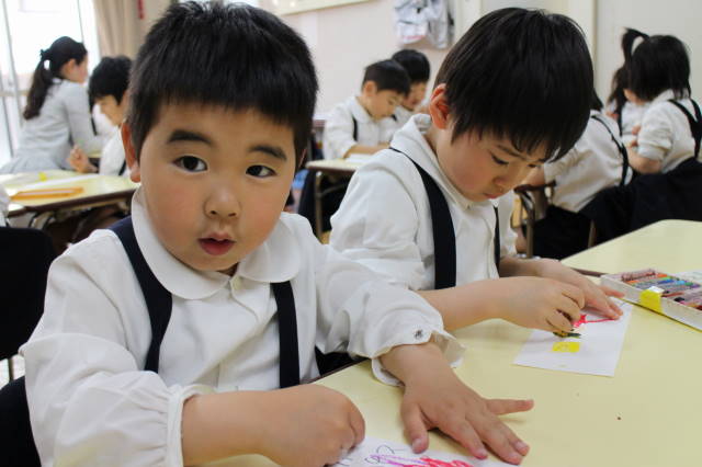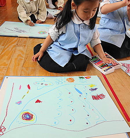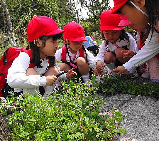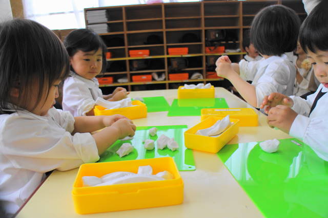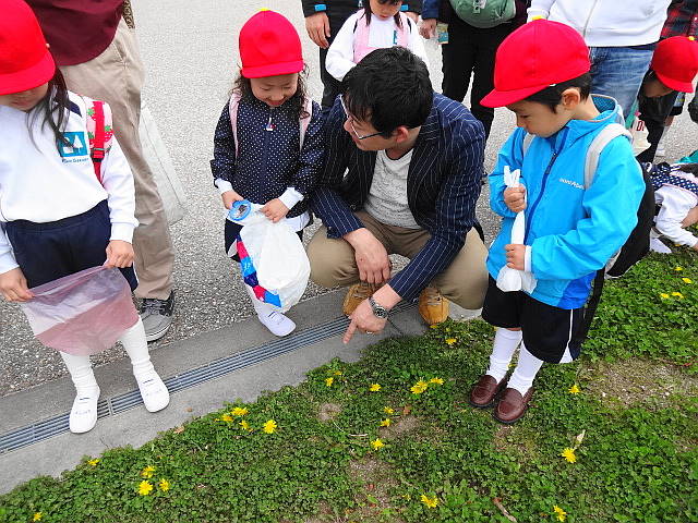 幼稚園では、学年ごとに分かれてエコ活動を行っています。