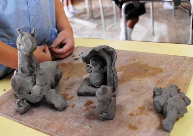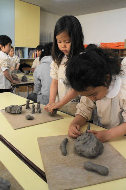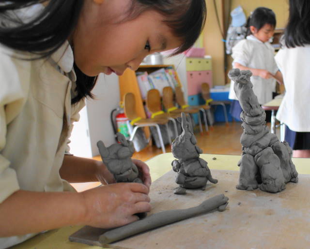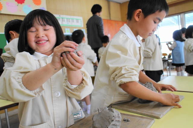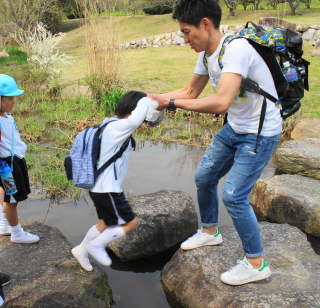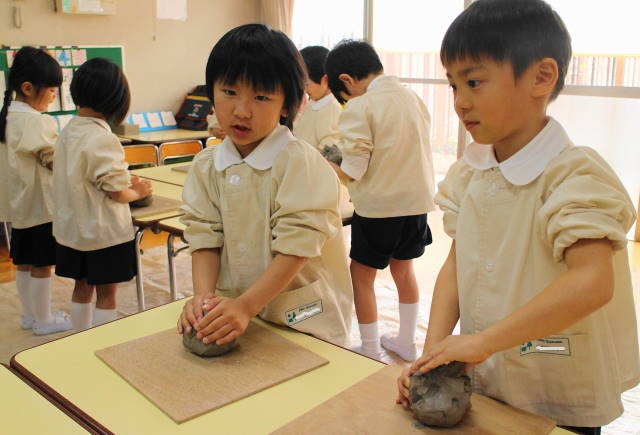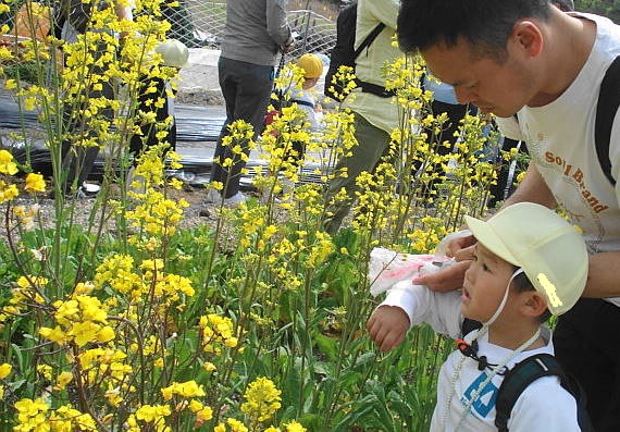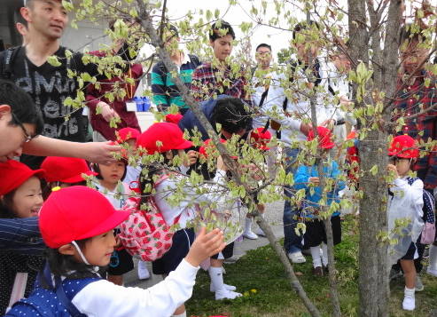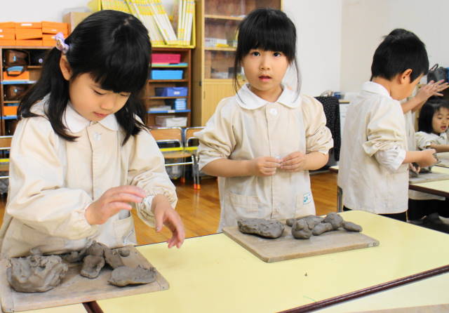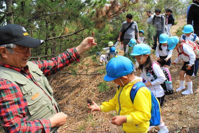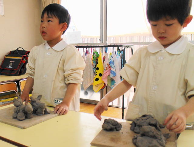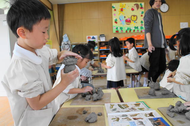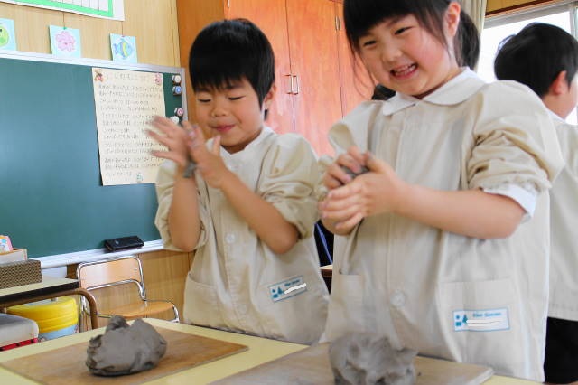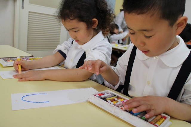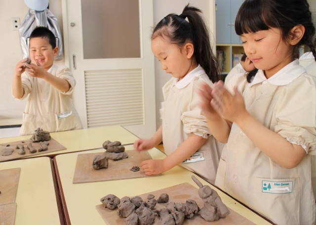 幼稚園では、学年ごとに分かれてエコ活動を行っています。