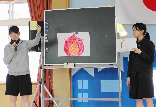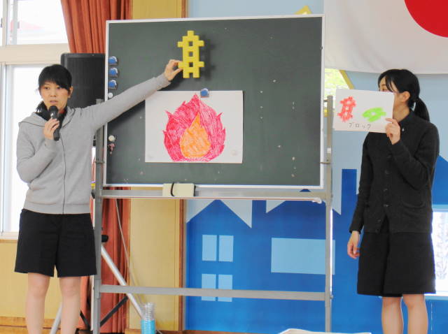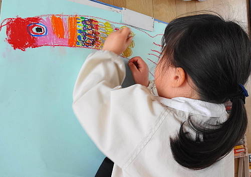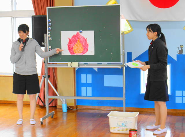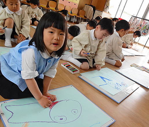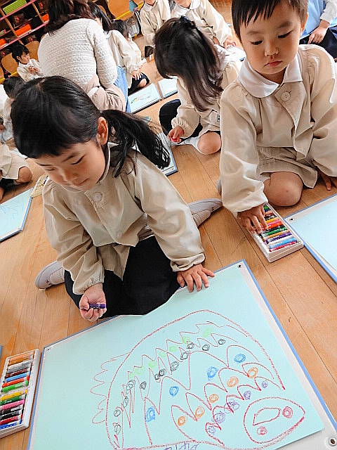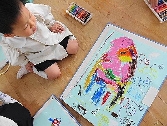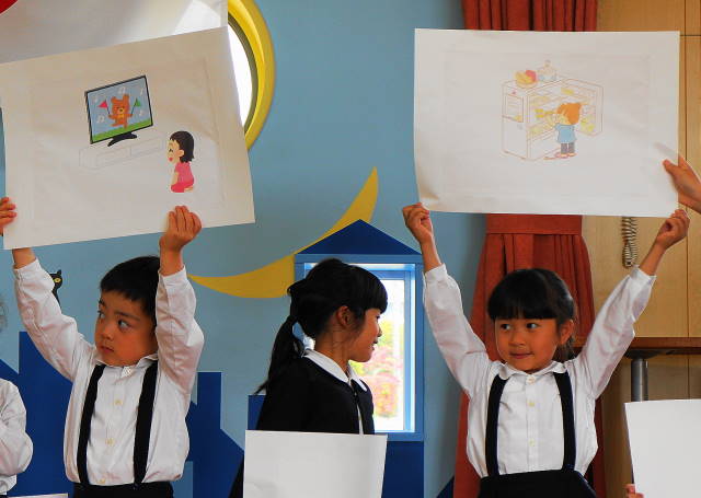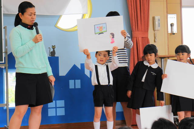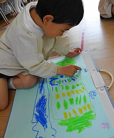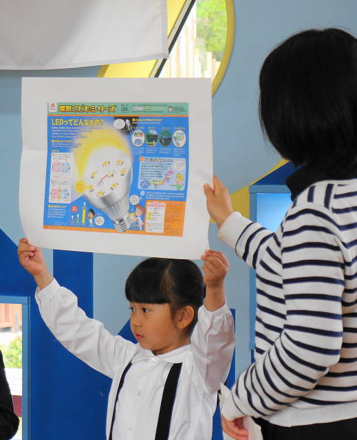 年少・黄組は『ごみ』、年中・赤組は『水』、年長・青組は『電気』について、一年間、学んだり、エコに取り組んだりします。